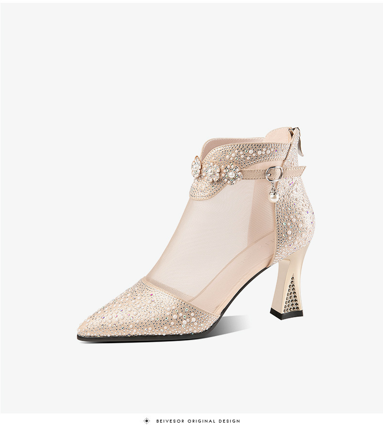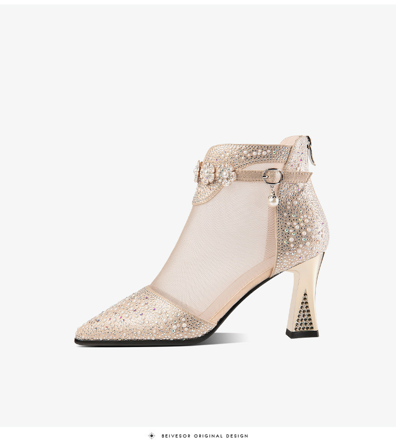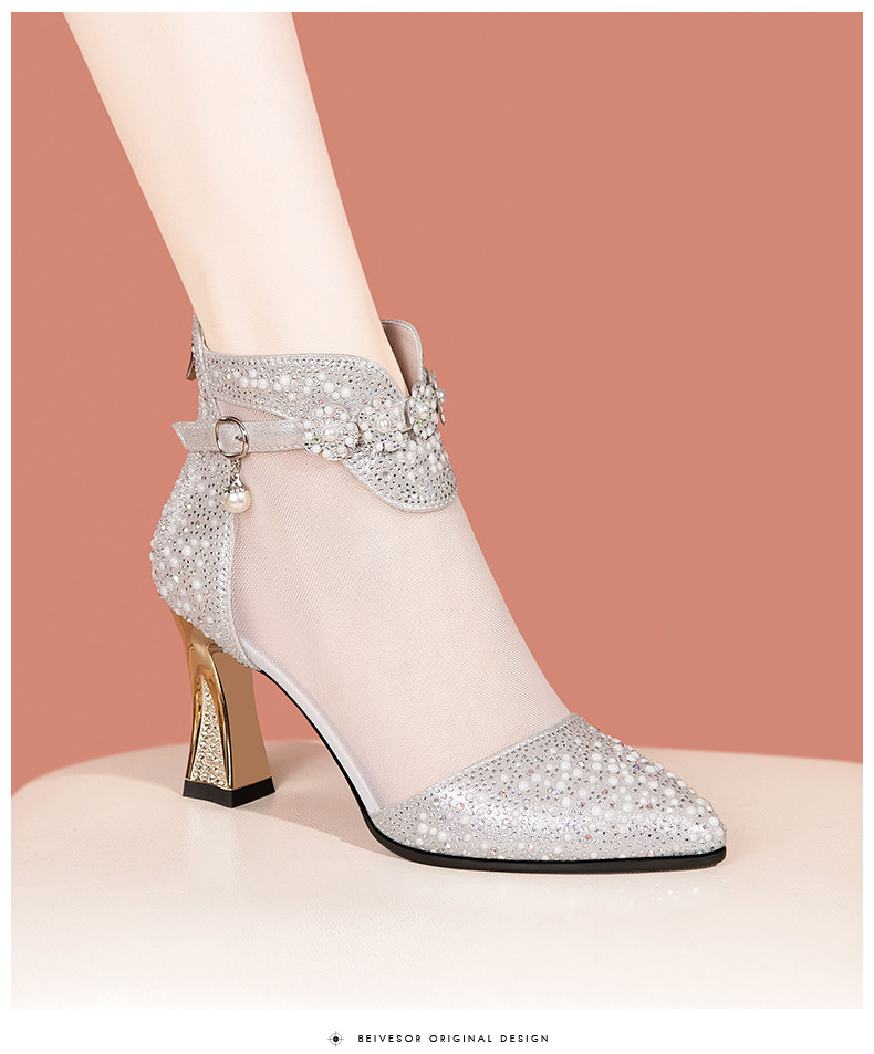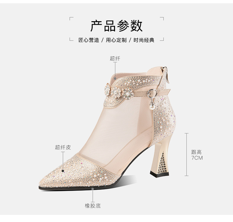 AliExpress 여름 한국 스타일 라인 석 메쉬 부츠 여성용 미드 힐 중공 쿨 싱글 레이어 신발 여성용 두꺼운 굽 지퍼 여성용 싱글 레이어 신발 부츠스토어 가기