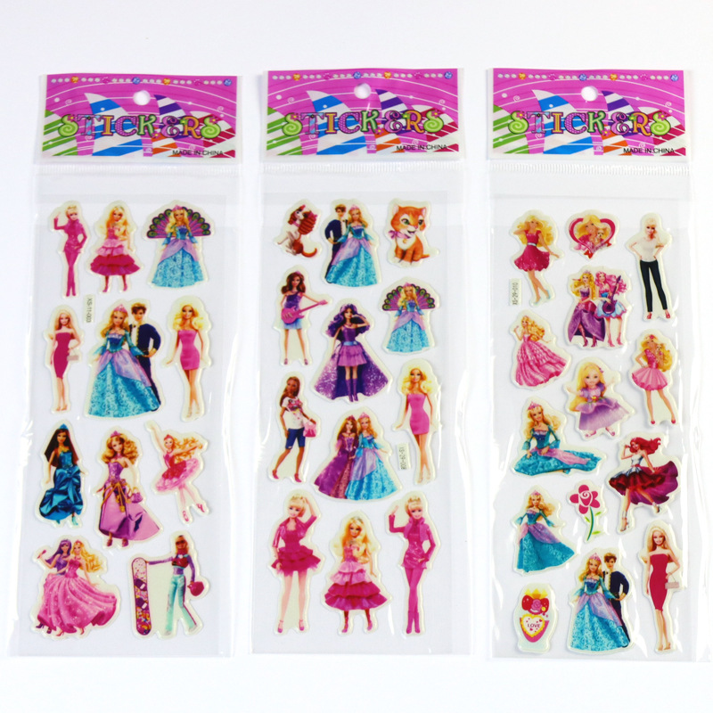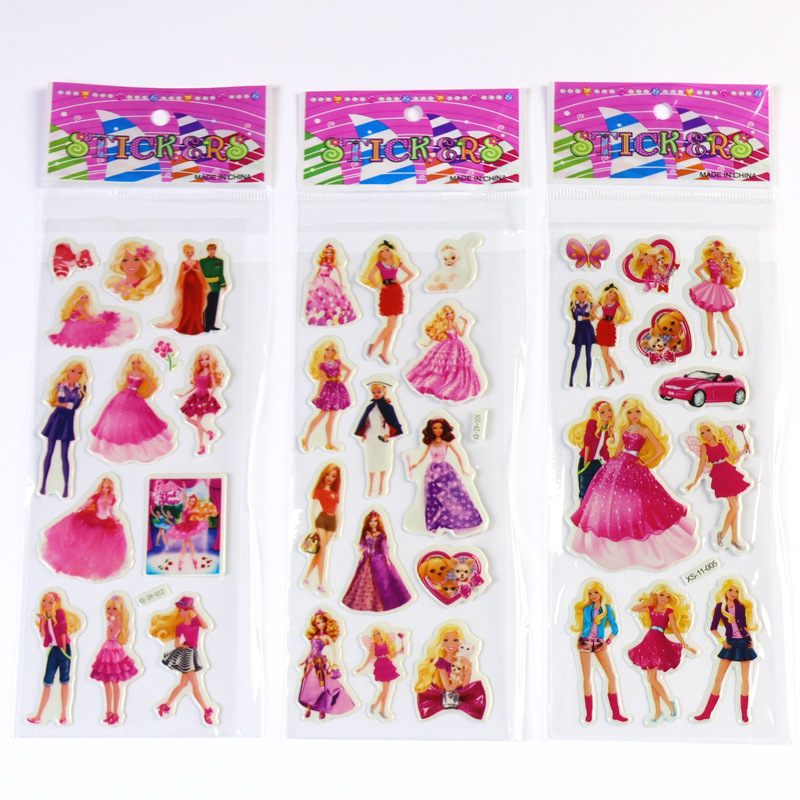 바비 버블 스티커 어린이 만화 공주 스티커 3 차원 PVC 스티커 국경 생일 파티 선물스토어 가기