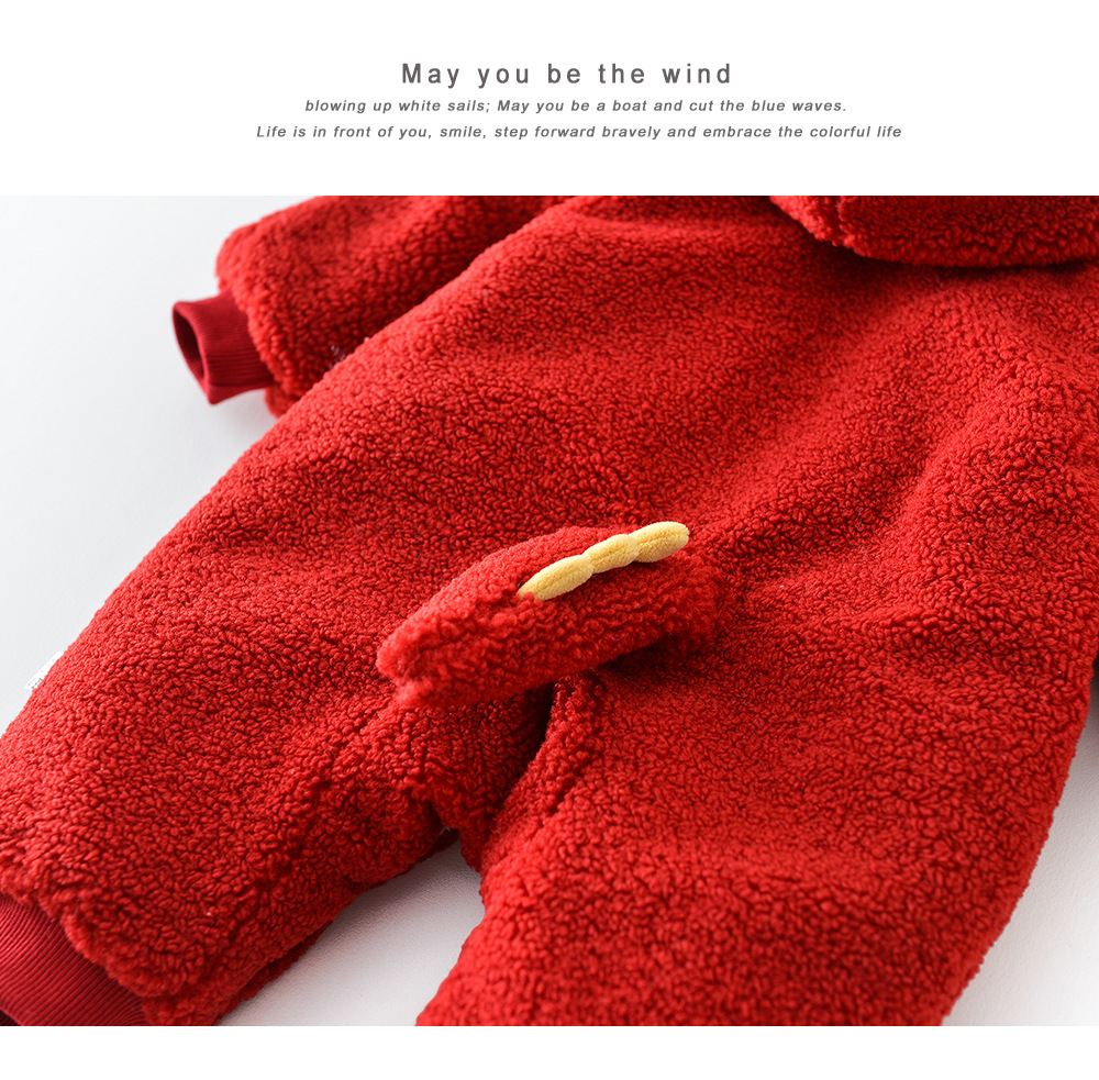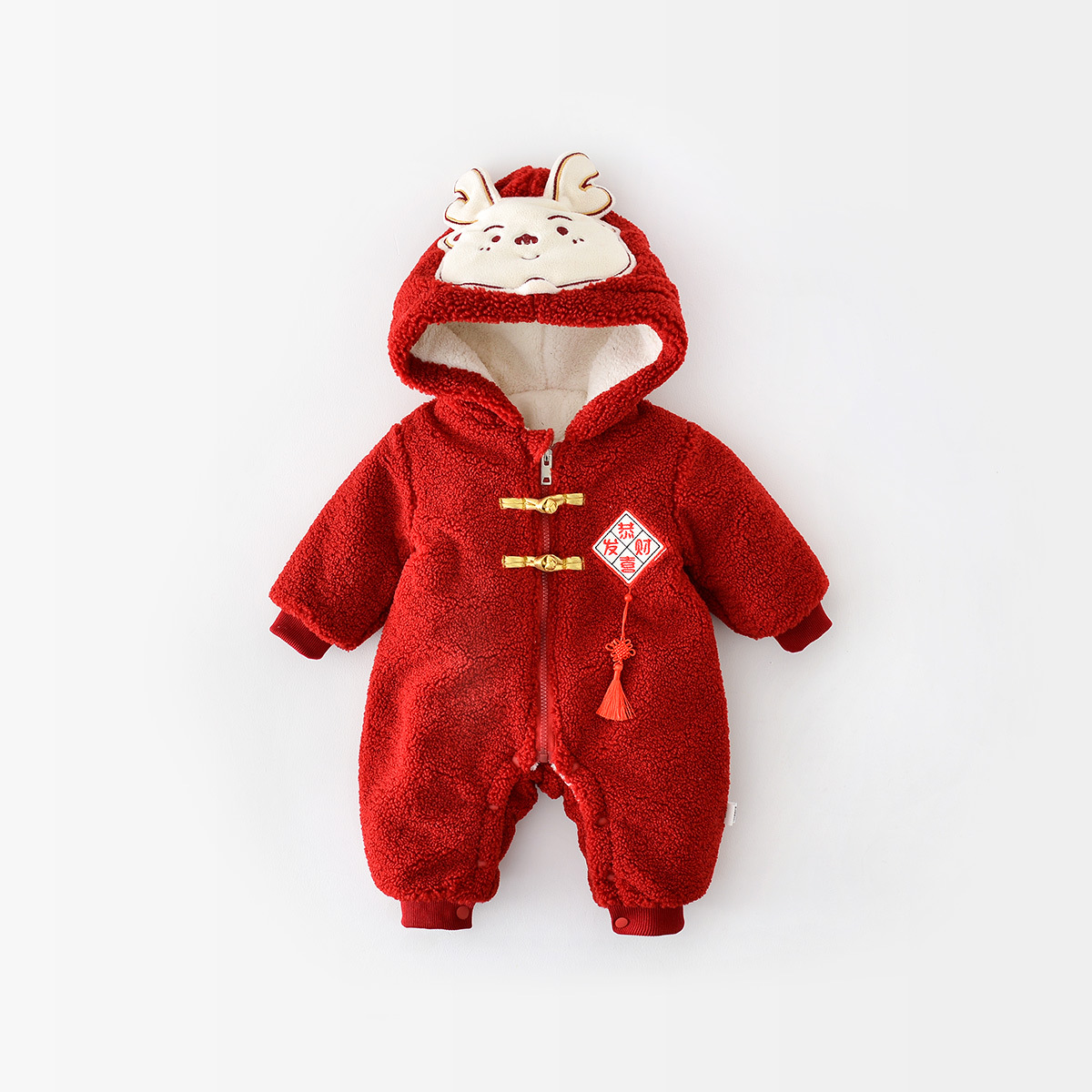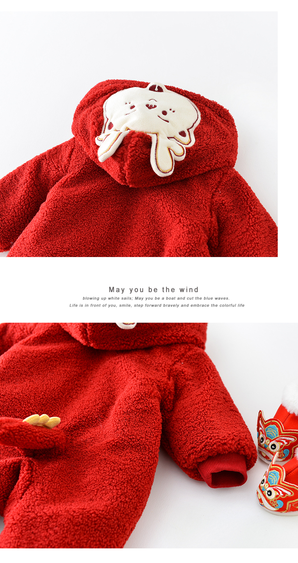 아기의 기모 점프 슈트 겨울 용 아기 두꺼운 따뜻한 중국 스타일 연간 세트 겉옷을 입고 후드 모자 등산 세트