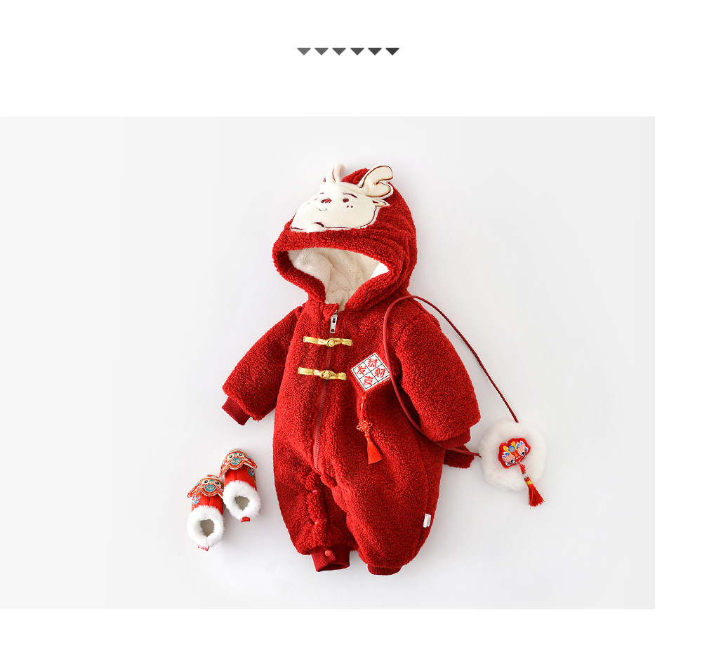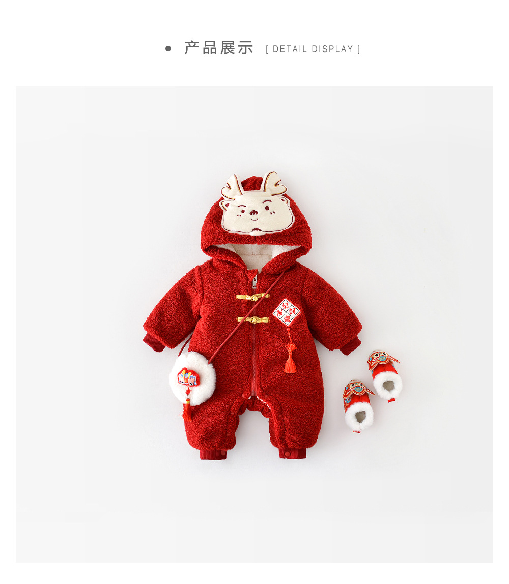 아기의 기모 점프 슈트 겨울 용 아기 두꺼운 따뜻한 중국 스타일 연간 세트 겉옷을 입고 후드 모자 등산 세트스토어 가기