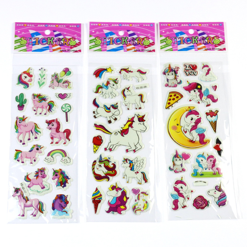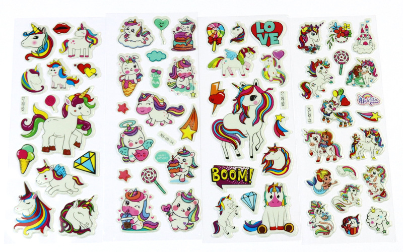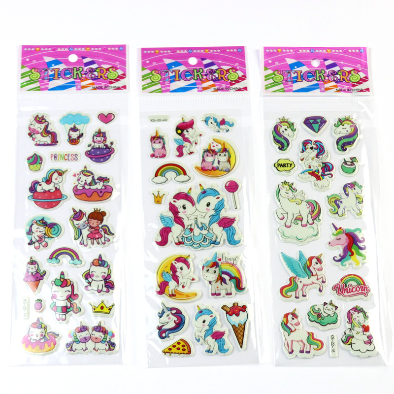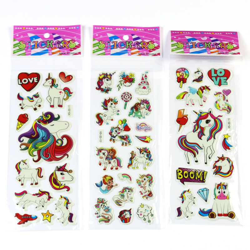 유니콘 버블 스티커 어린이 만화 귀여운 말 스티커 입체 버블 스티커 국경 생일 파티 선물