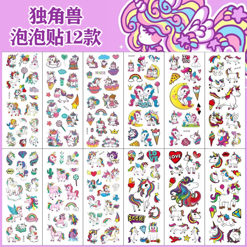 유니콘 버블 스티커 어린이 만화 귀여운 말 스티커 입체 버블 스티커 국경 생일 파티 선물스토어 가기