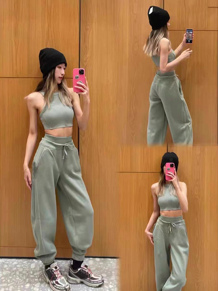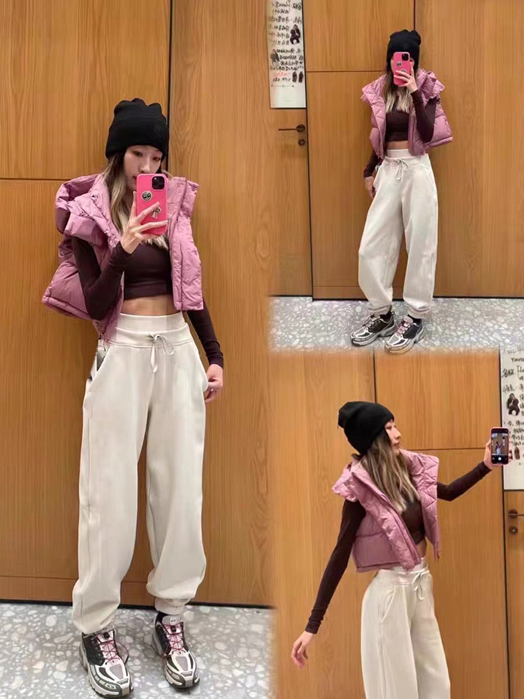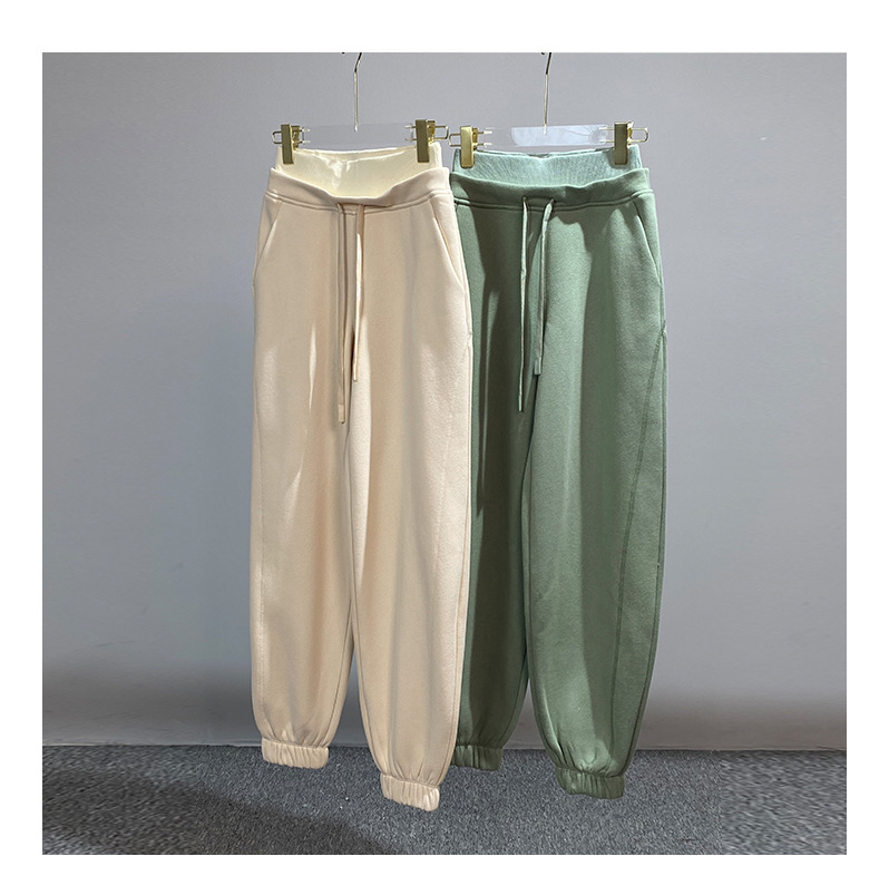 틈새 2023 가을과 겨울 새로운 편안한 느슨한 스포츠 다리 바지 편안한 높은 허리 끈 여성용 허리 땀 바지스토어 가기