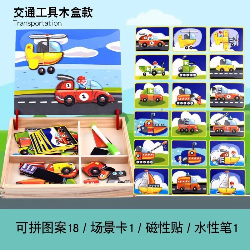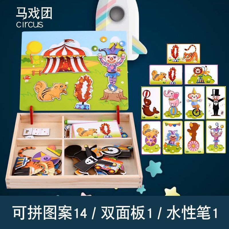 공장 공급 목조 행복한 농장 자기 퍼즐 양면 퍼즐 드로잉 보드 어린이 교육 장난감 도매스토어 가기