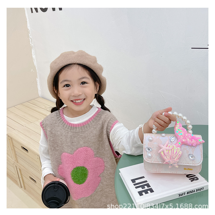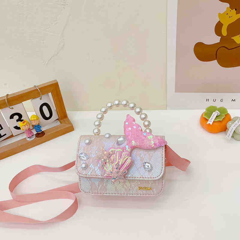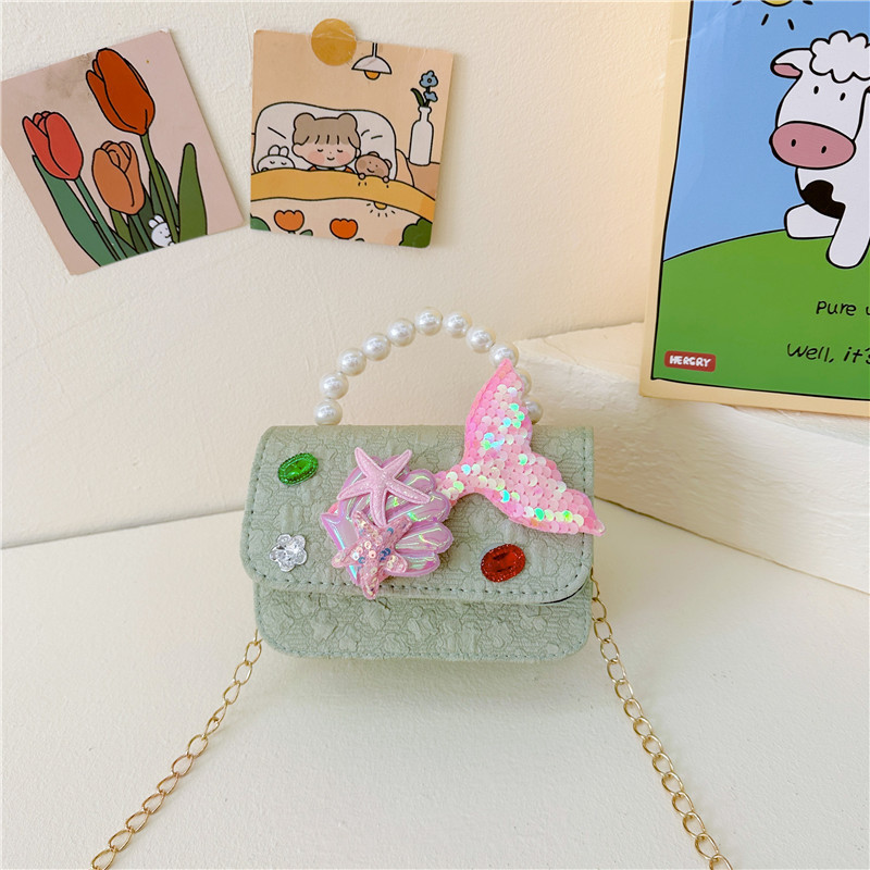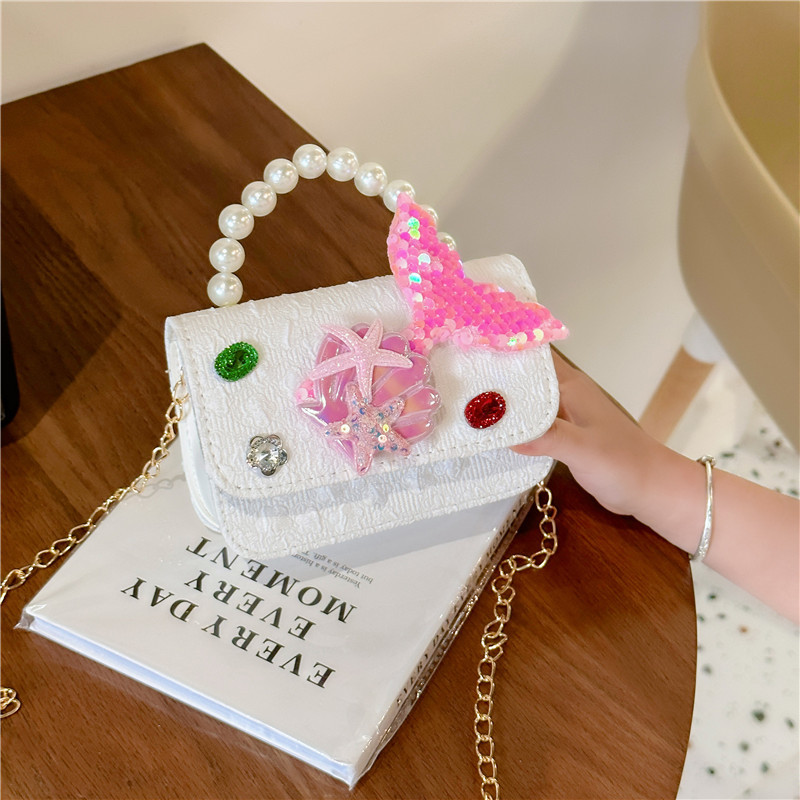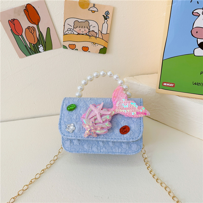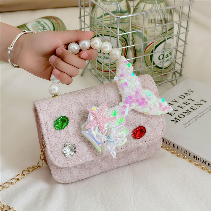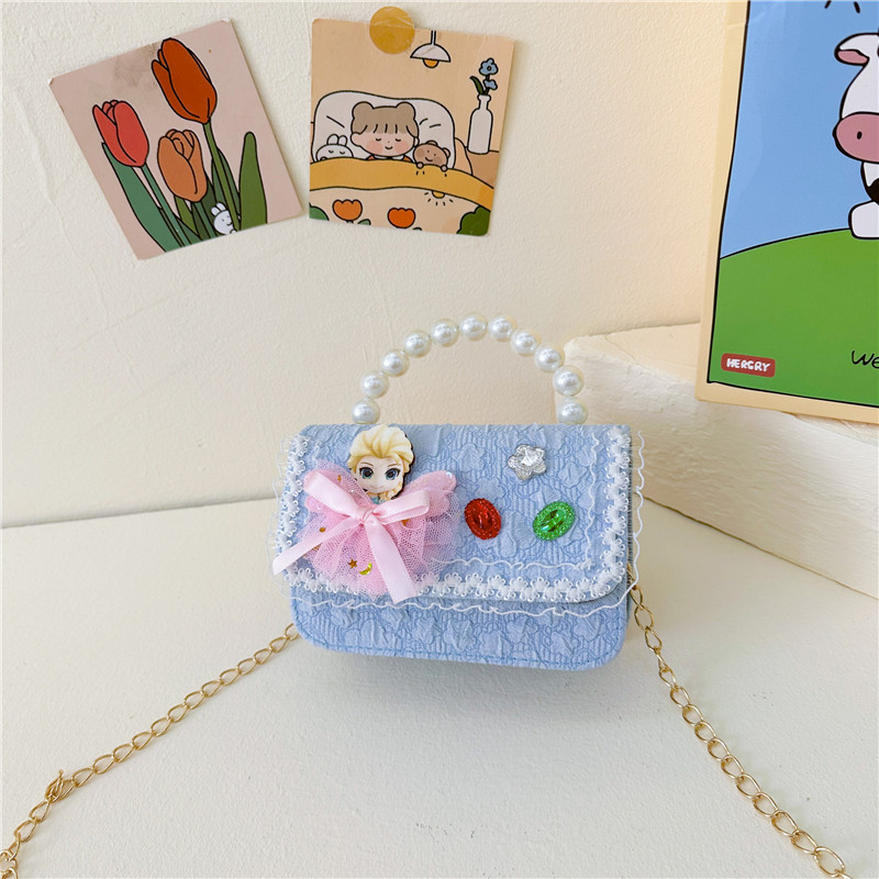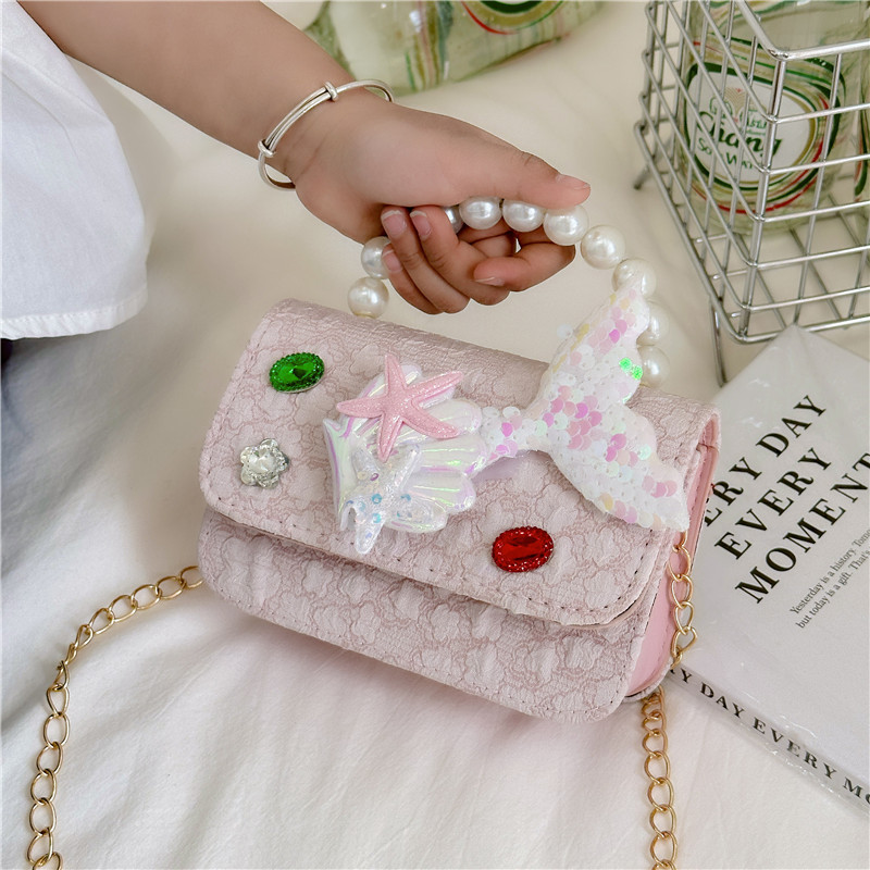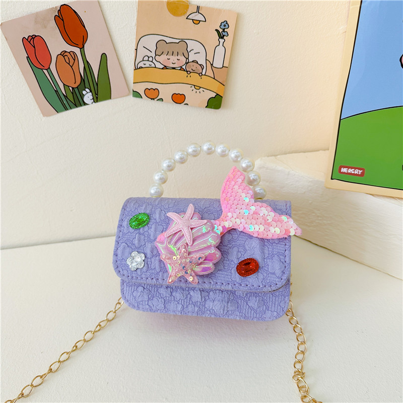 어린이 작은 가방 소녀 공주 패션 인어 엘사 진주 핸드백 동전 지갑 경량스토어 가기