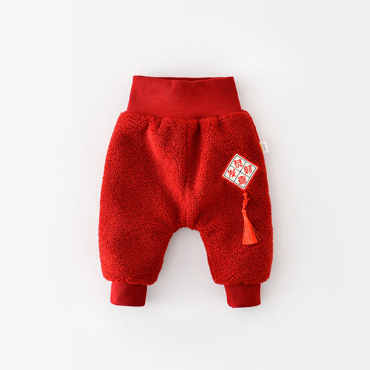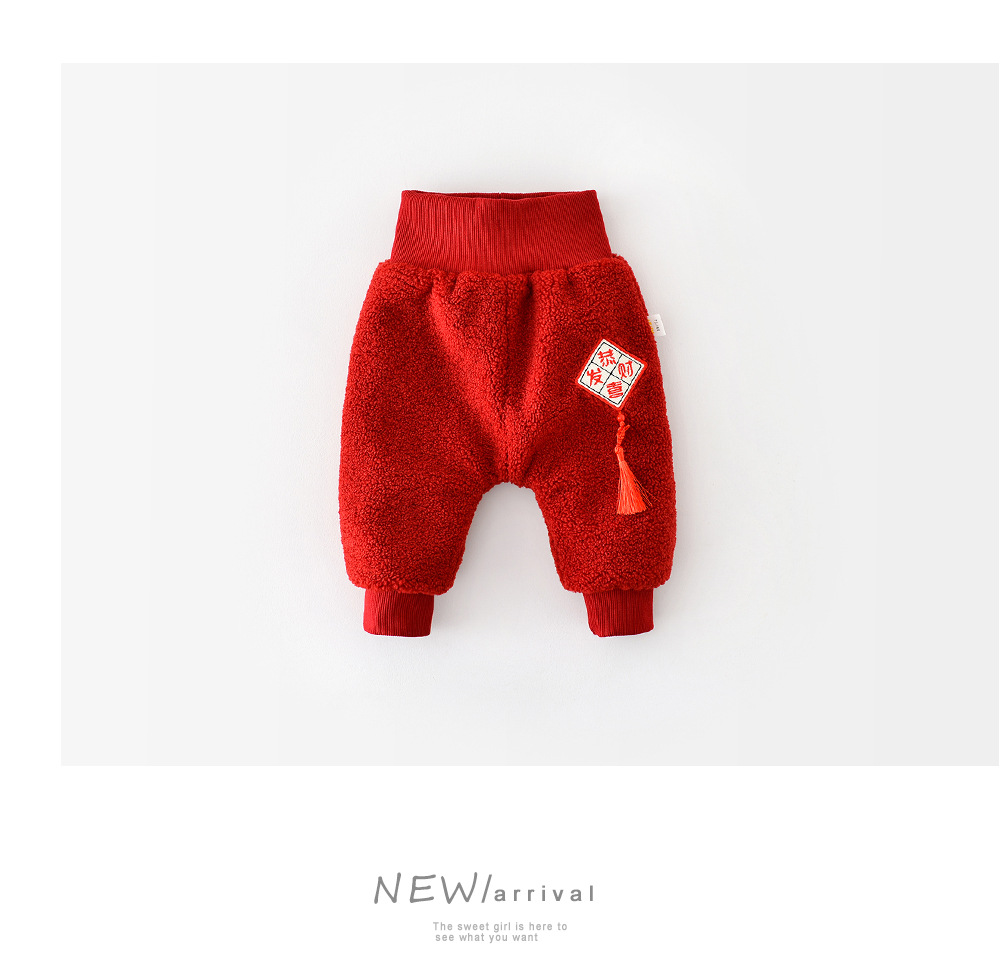 아기 바지 아기 기모 중국 스타일 면 바지 대형 PP 바지 어린이 두꺼운 새해 옷 아기 외출