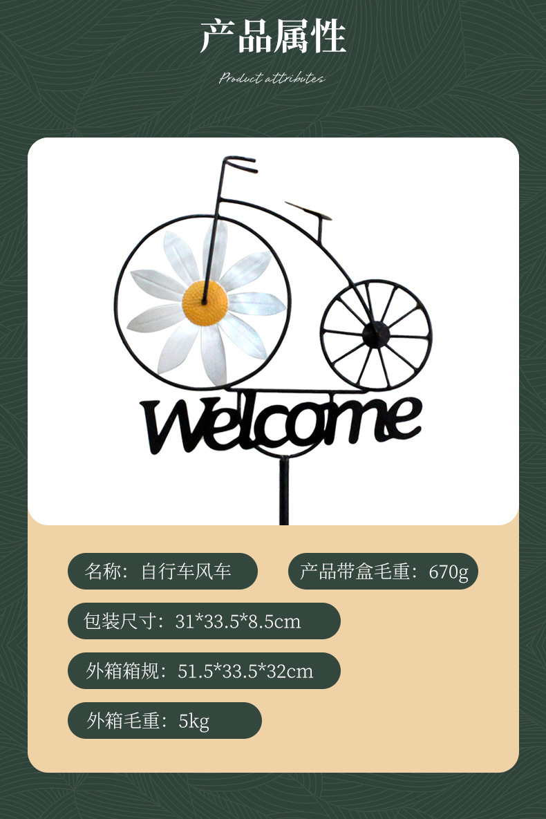국경을 넘는 신제품, 미국식 목가적인 데이지 자전거, 프랑스식 시골 정원 풍차, 철제 꽃꽂이 장식