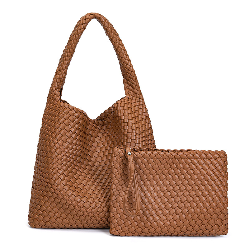 새로운 순수 손으로 짠 대용량 PU 가죽 숙녀 가방 캐주얼 휴대용 어머니 겨드랑이 숄더 백 도매
