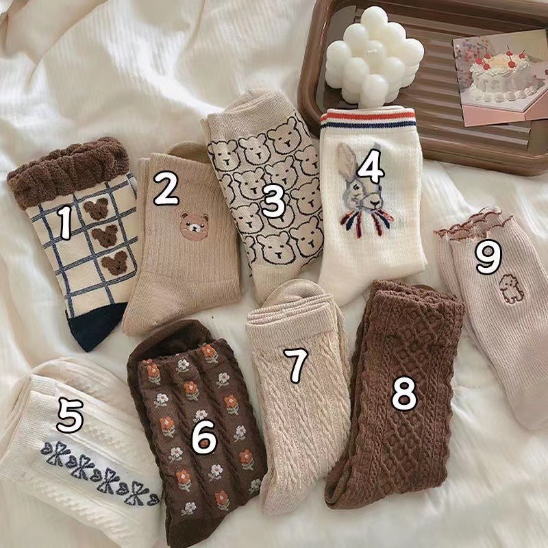 지구 색 양말 여성용 중간 길이 양말 가을과 겨울 일본 스타일 만화 예술 학술 스타일 더미 양말 최신 유행 모든 경기 스타킹