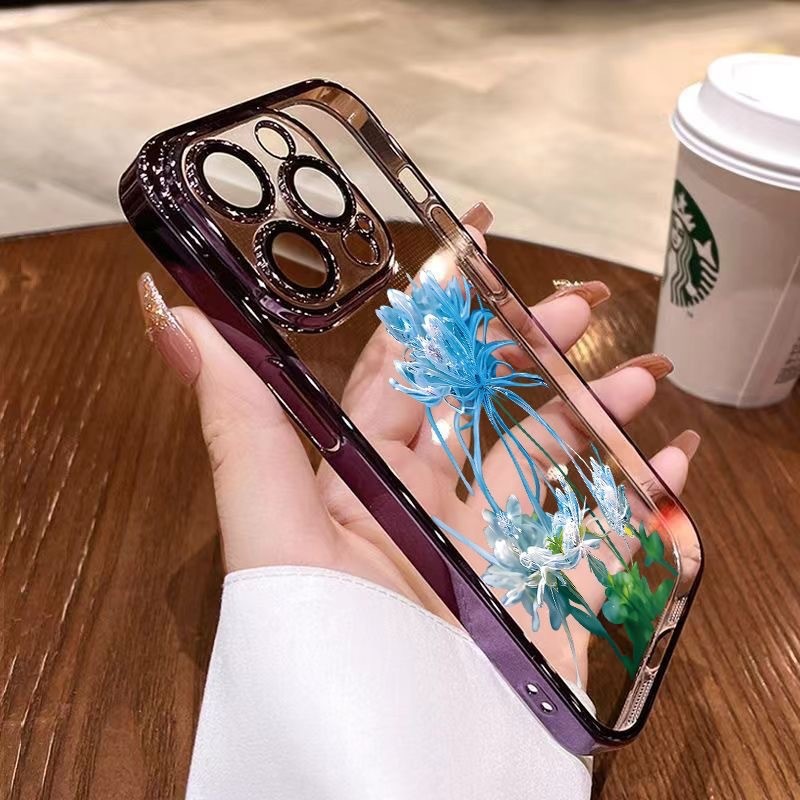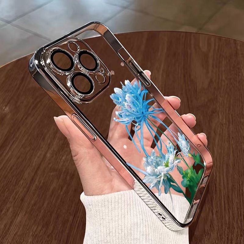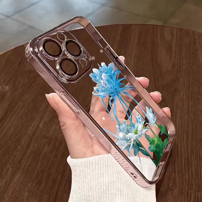 • [핑크 고스트 플라워-파 피크 블루] 렌즈 필름 제공-전기 도금 소프트 케이스