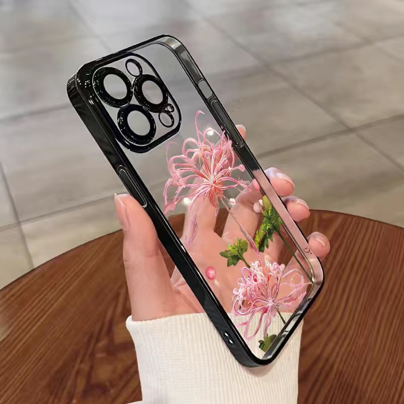 • [핑크 고스트 플라워-블랙] 렌즈 필름-전기 도금 소프트 쉘 제공