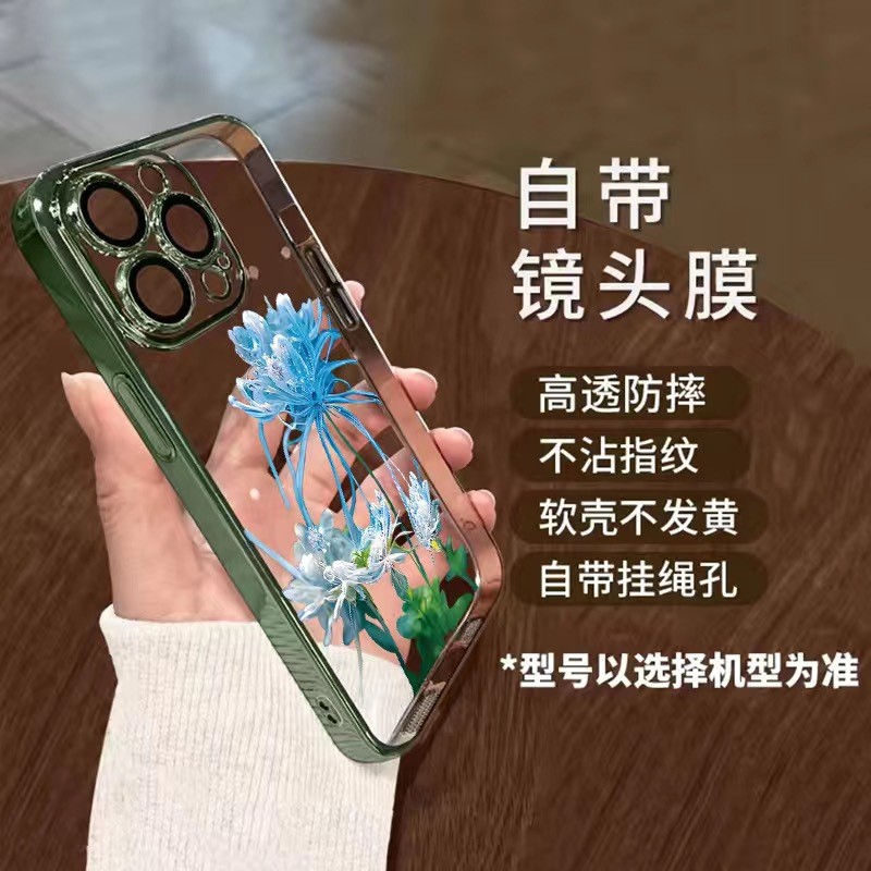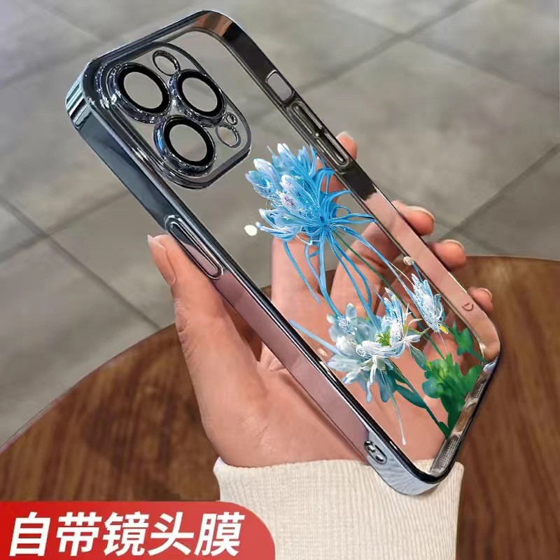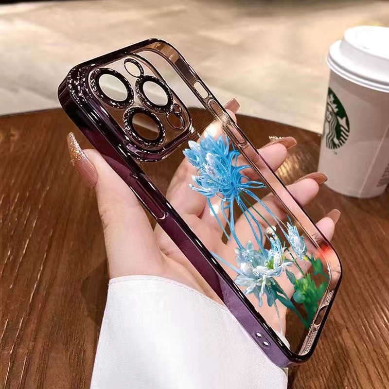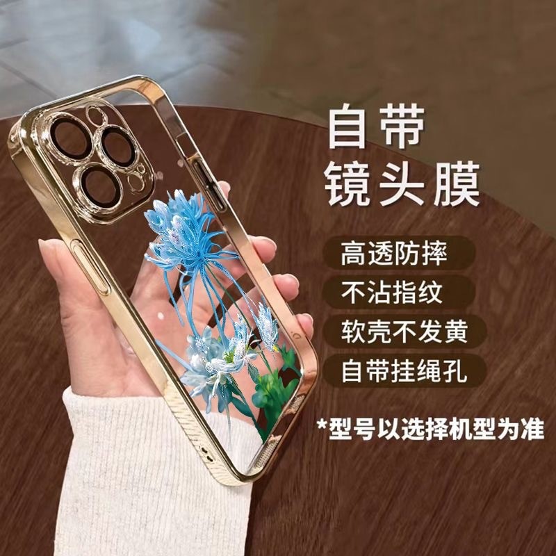 • [블루 고스트 플라워-골드] 렌즈 필름-전기 도금 소프트 케이스 포함