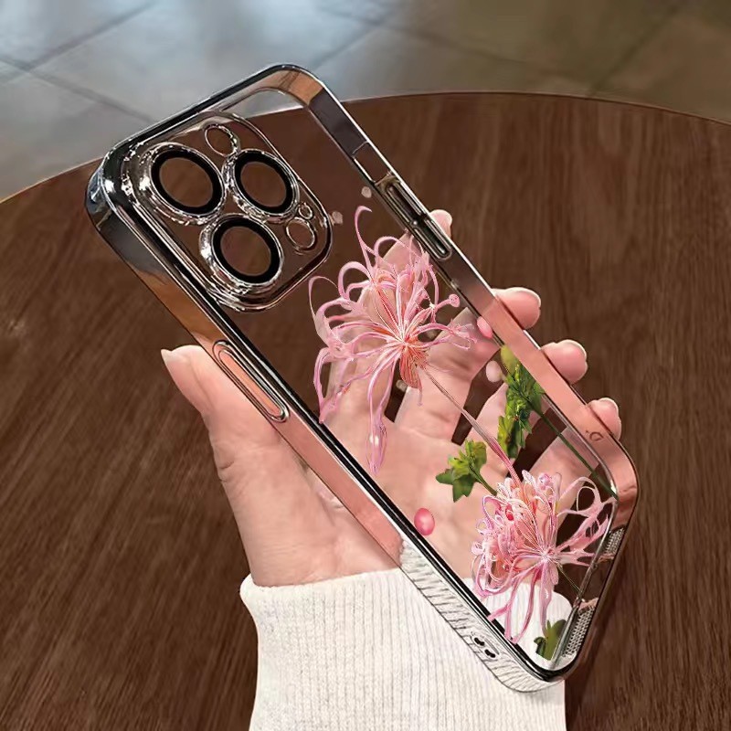 • [핑크 고스트 플라워-실버] 렌즈 필름 포함-전기 도금 소프트 케이스