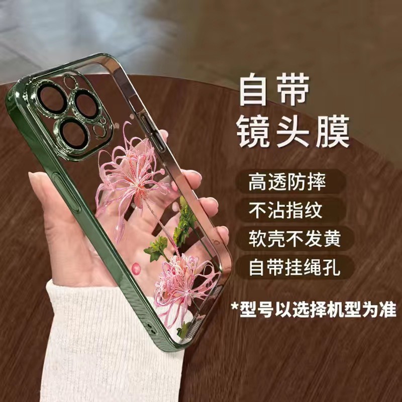 고스트 플라워는 Apple 15/14/15Promax 낙하 방지 IP14 렌즈 필름 보호 기능이있는 가볍고 얇은 도금에 적합합니다.스토어 가기