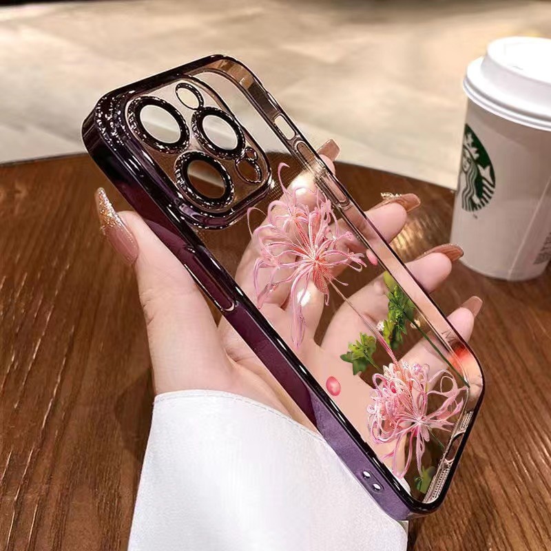 • [Blue Ghost Flower-핑크] 렌즈 필름-전기 도금 소프트 케이스 포함