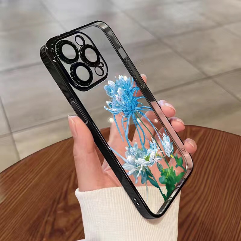 • [블루 고스트 플라워-블랙] 렌즈 필름-전기 도금 소프트 케이스 포함