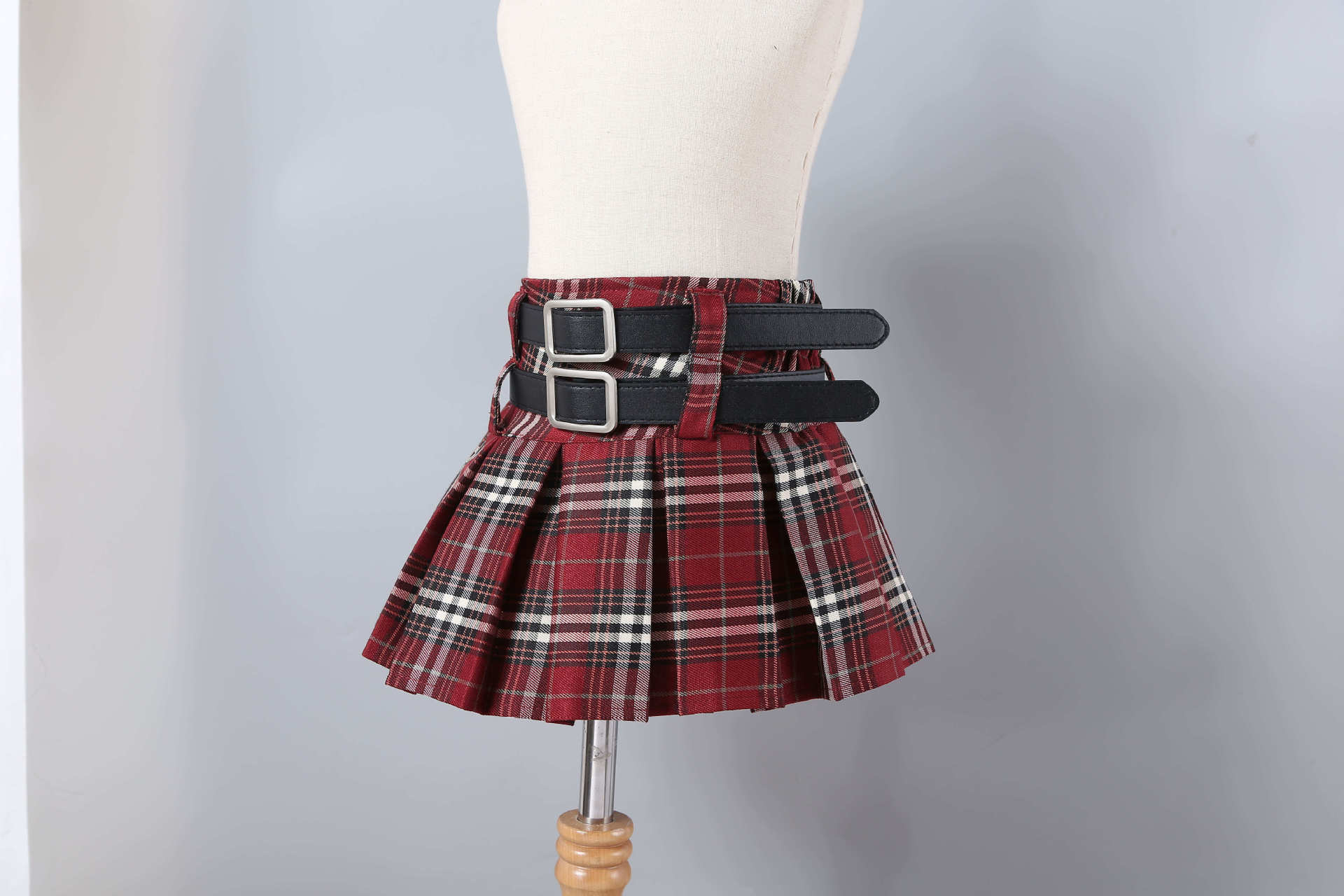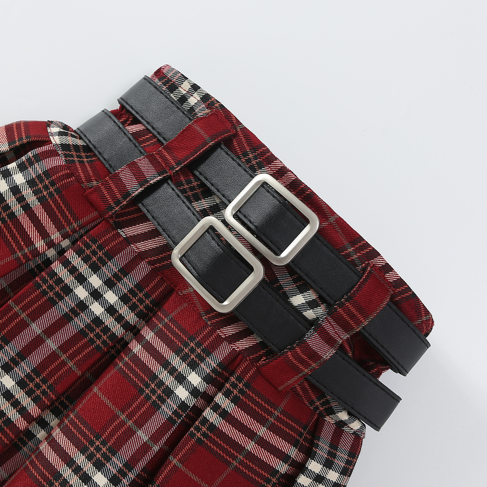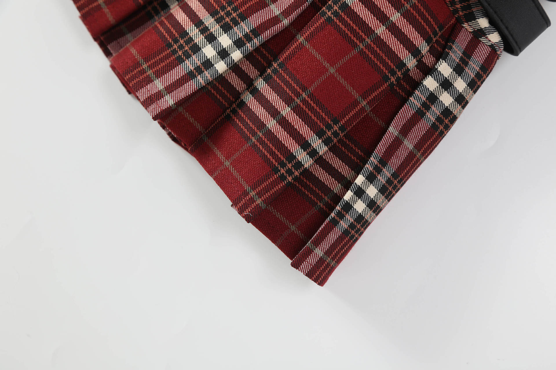 • 빨간 격자 무늬 이중 벨트 격자 무늬 스커트 (벨트는 포함되지 않음)