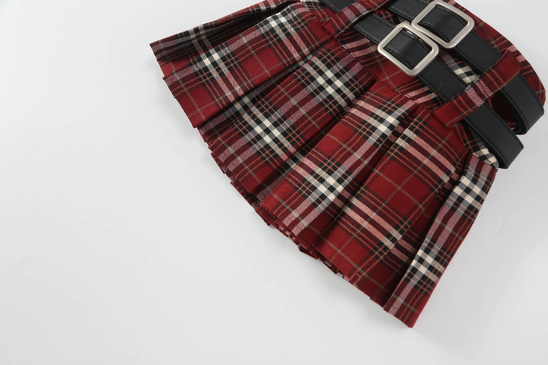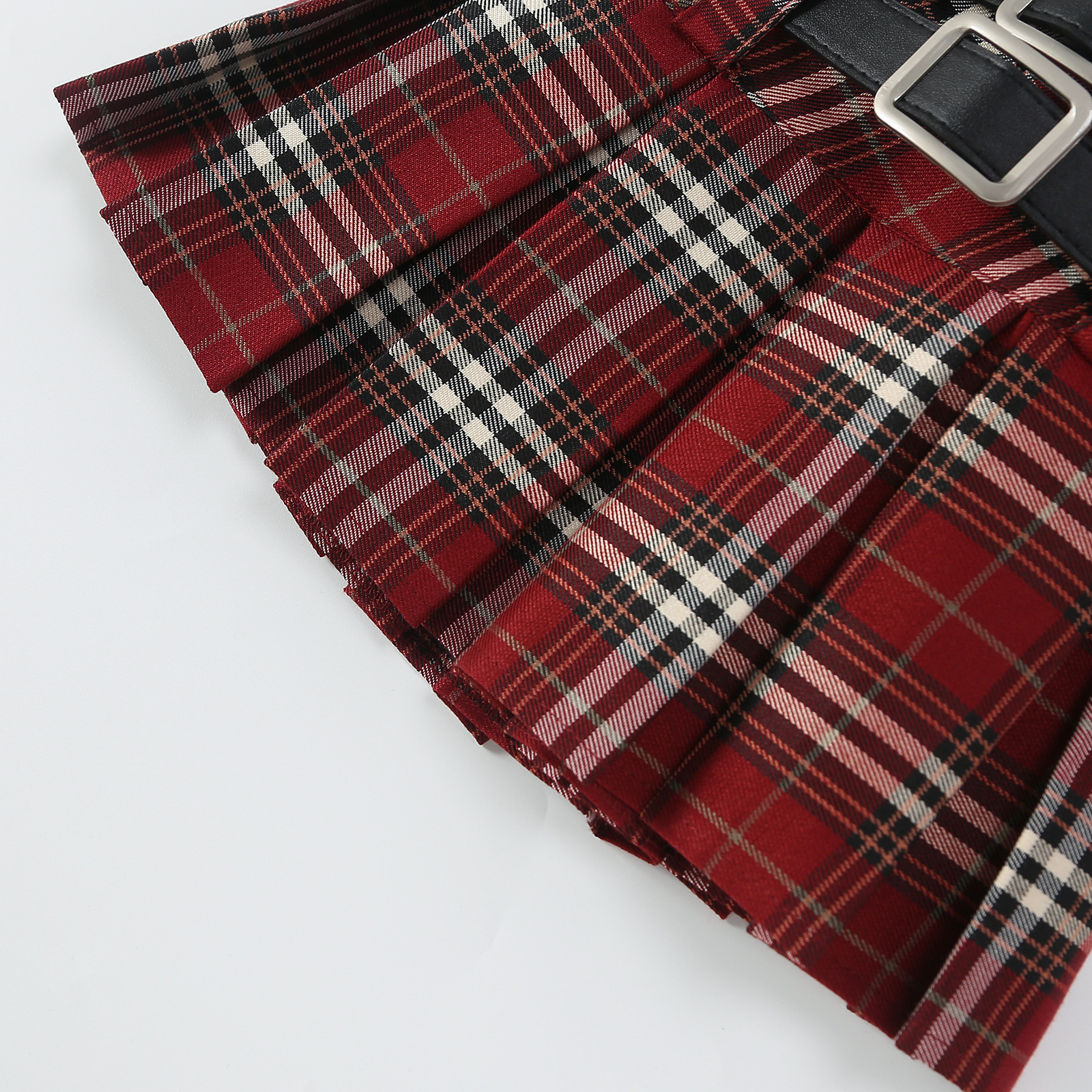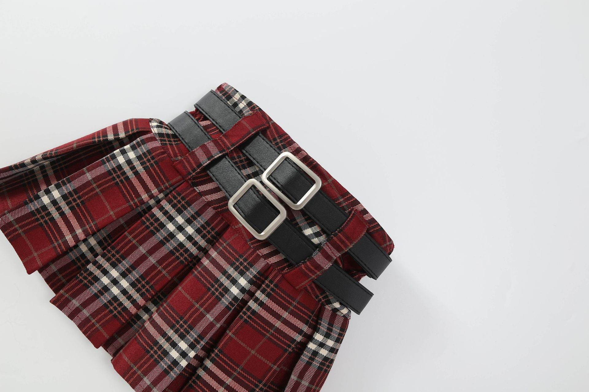 • 빨간 격자 무늬 이중 벨트 격자 무늬 스커트 (벨트는 포함되지 않음)