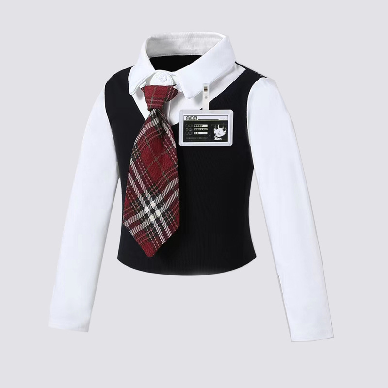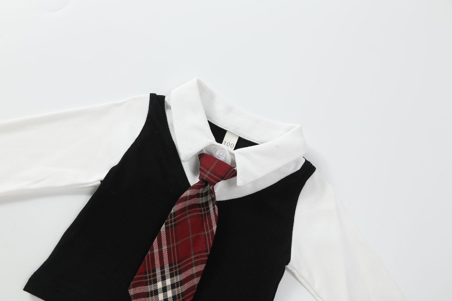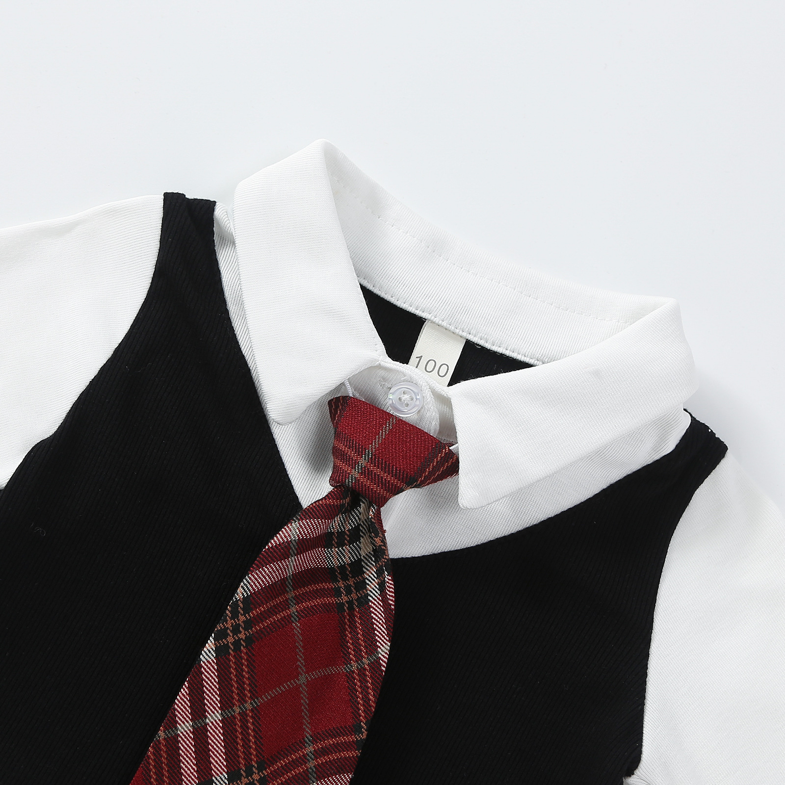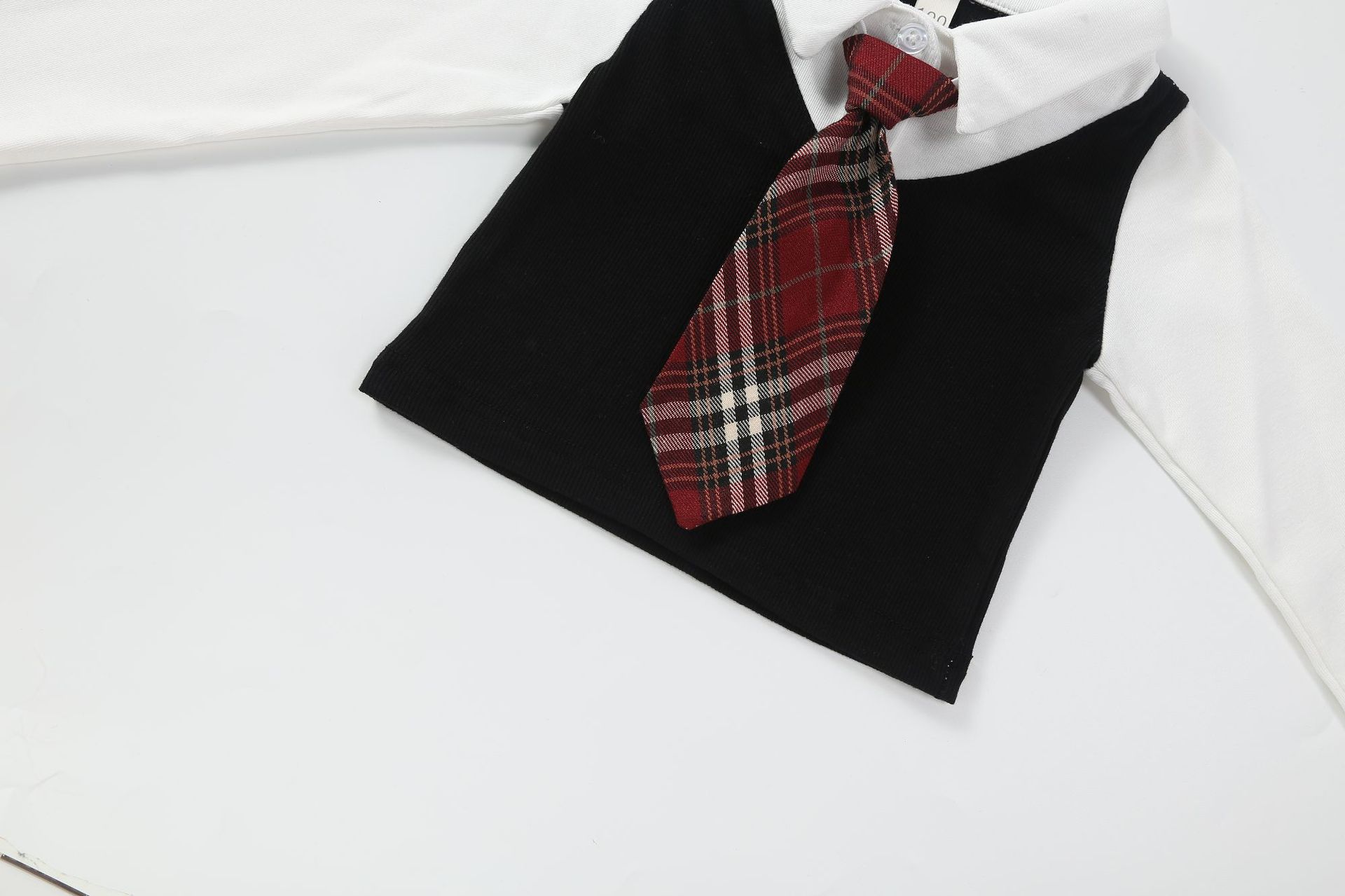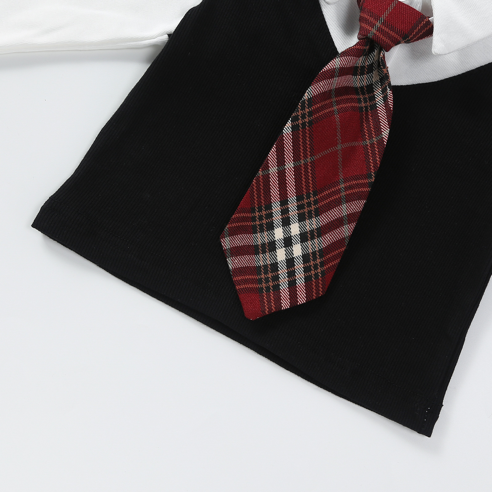 • 흑백 2365 가짜 니트 셔츠 2 개 + 빨간 넥타이