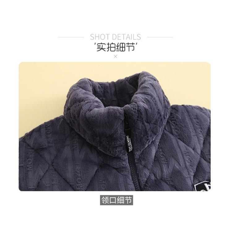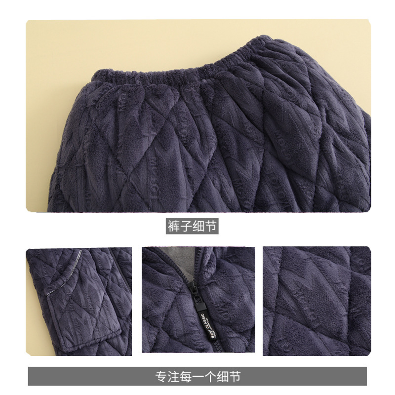 간단한 남자의 잠옷 가을과 겨울 두꺼운 산호 양털 3 층 누비 이불 가정 옷 겨울 따뜻한 플란넬 세트