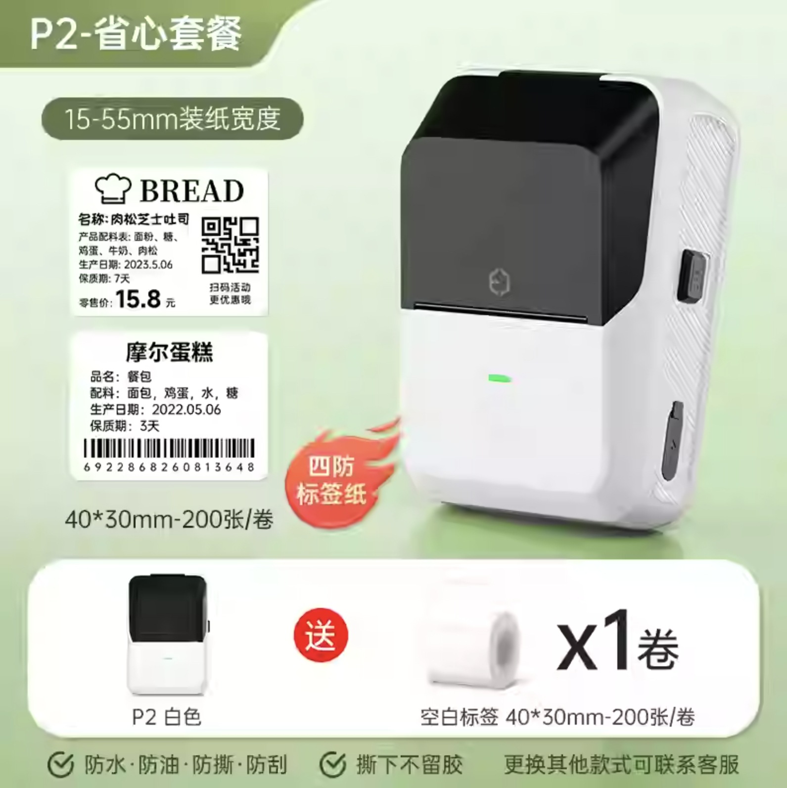 • P2 라벨 프린터 (영문판) + 40*30mm 특별 가격 용지 5 롤