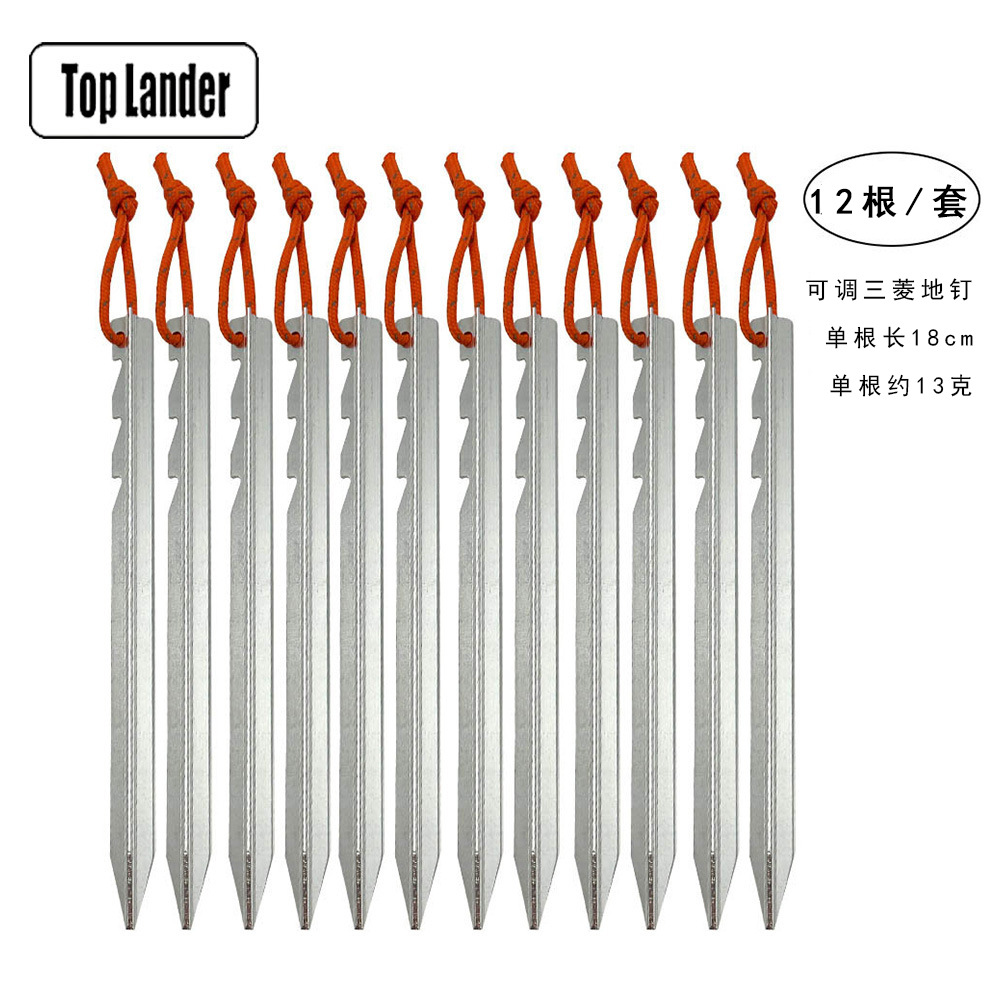 12 야외 텐트 알루미늄 합금 조정 가능한 미쓰비시 접지 못 18cm 반사 로프 고강도 캠프 손톱 고정 접지 못스토어 가기
