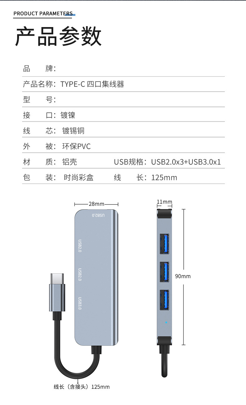 크로스 보더 유형-c 익스텐더 4 포트 hub3.0 1-4 고속 허브 노트북 USB 스플리터스토어 가기