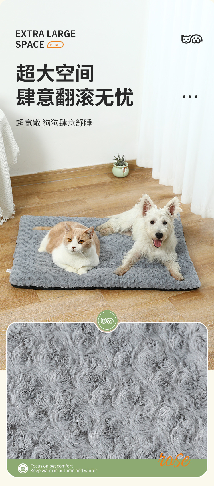 아마존 로즈 벨벳 개집 가을과 겨울 따뜻한 기모 두꺼운 애완 동물 매트 봉제 애완 동물 둥지 애완 동물 용품스토어 가기