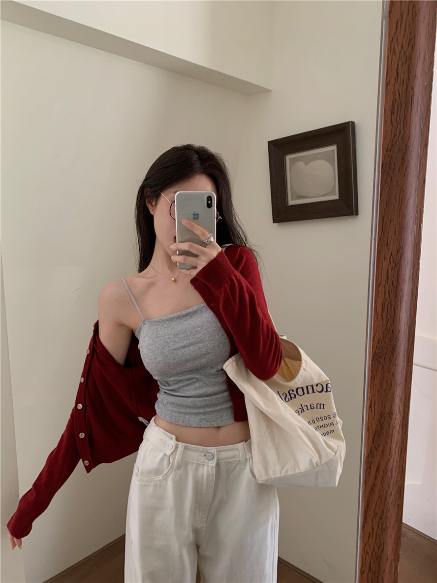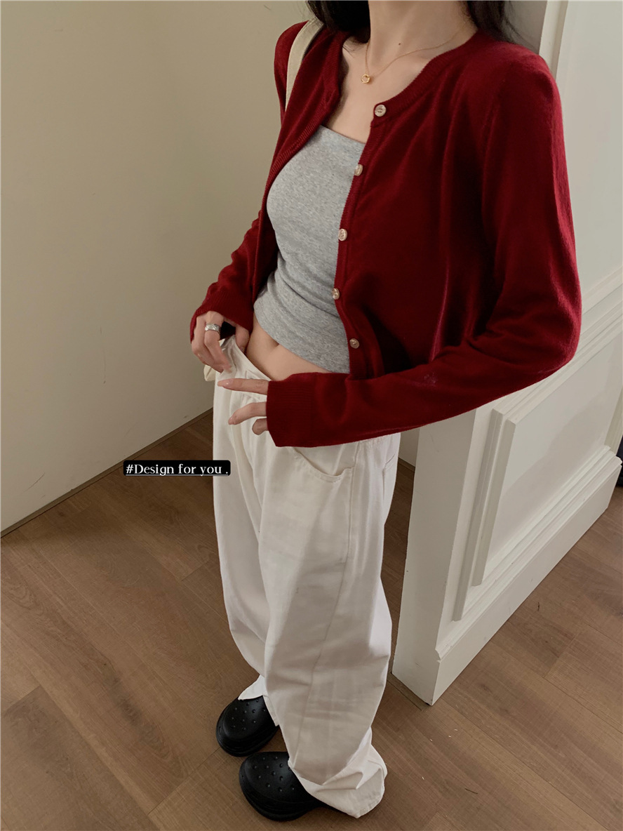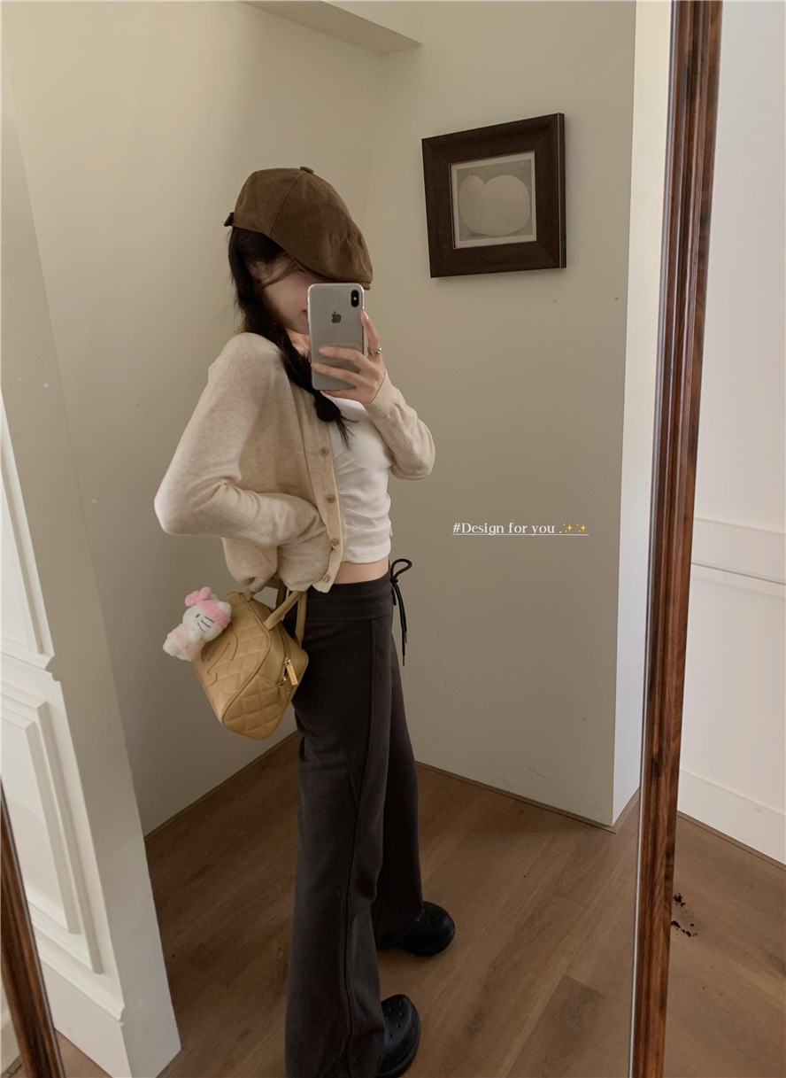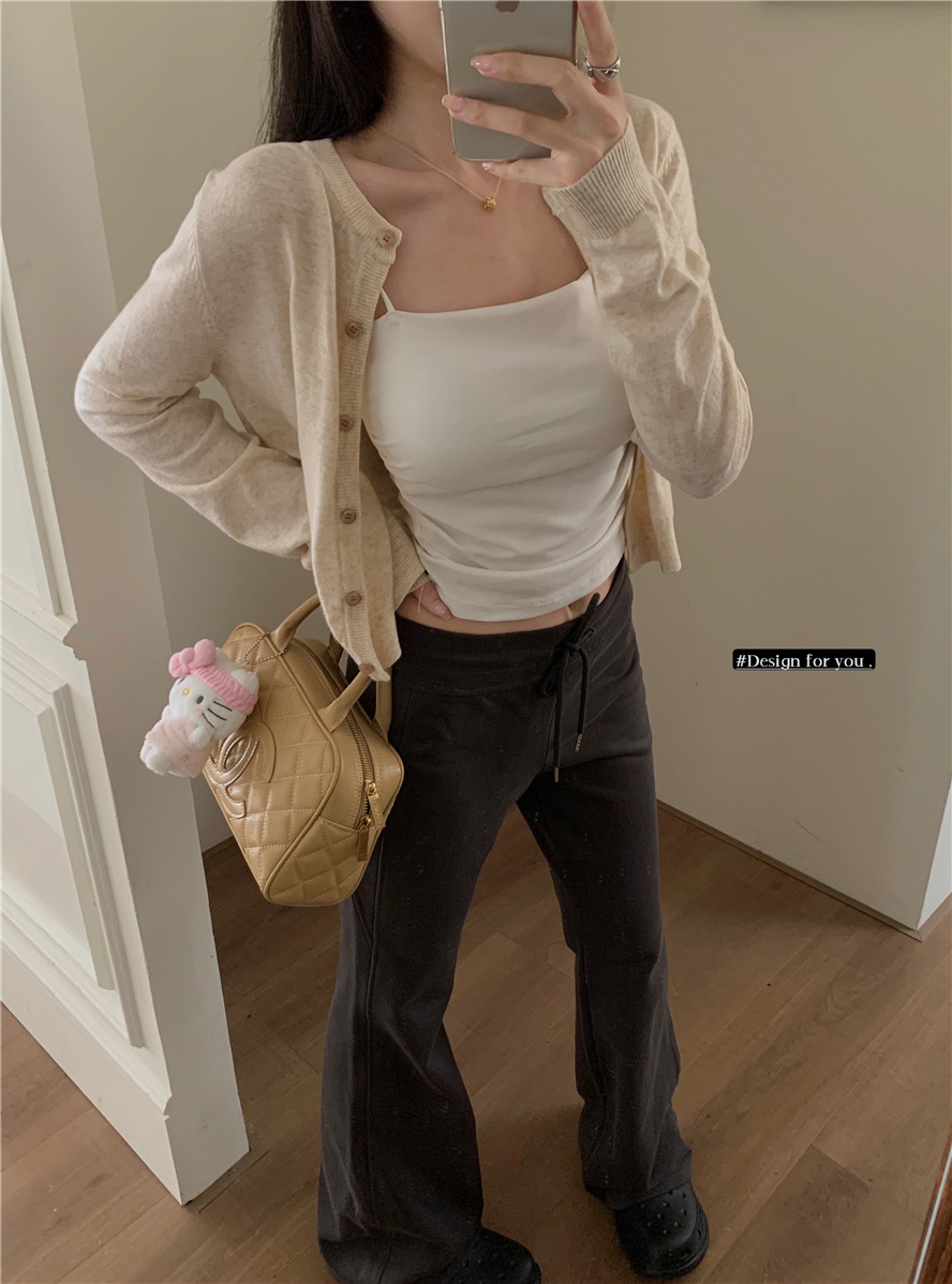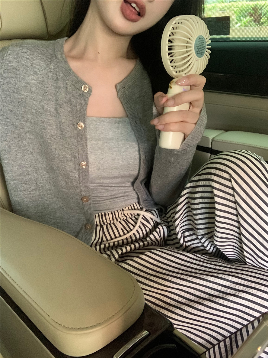 니트 카디건 재킷 여성 봄, 가을 새로운 스타일 몸집이 작은 슬림 슬림 회색 스웨터와 짧은 탑