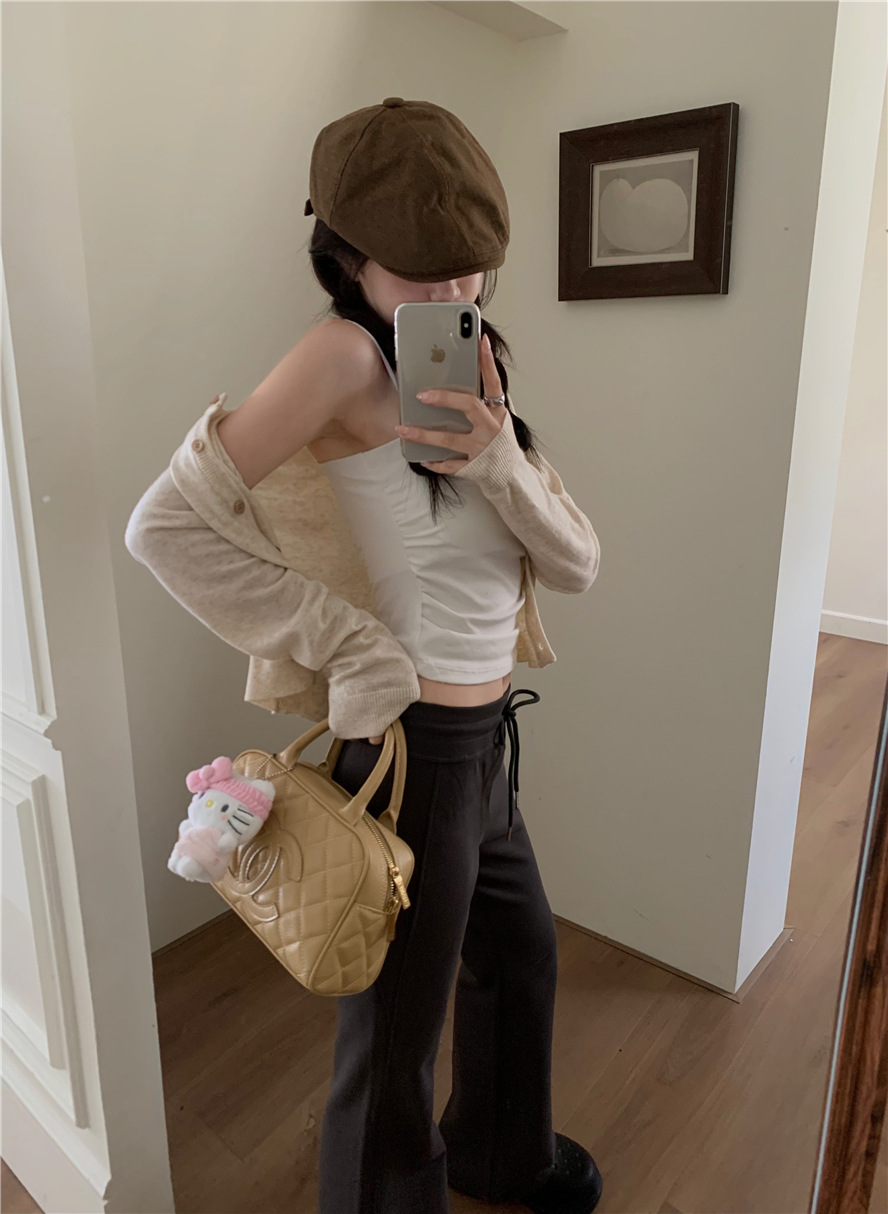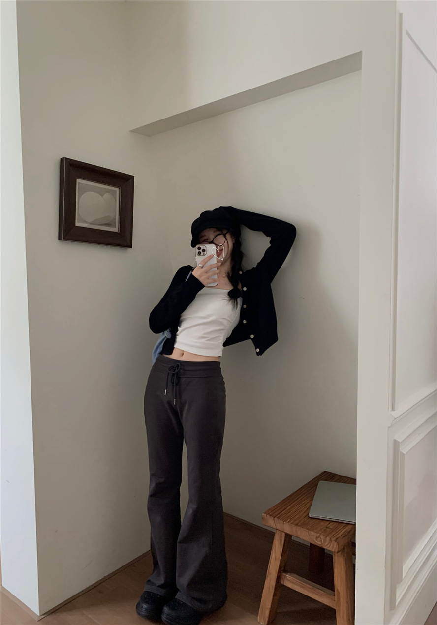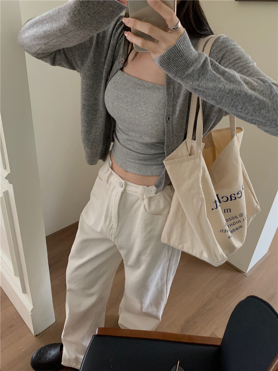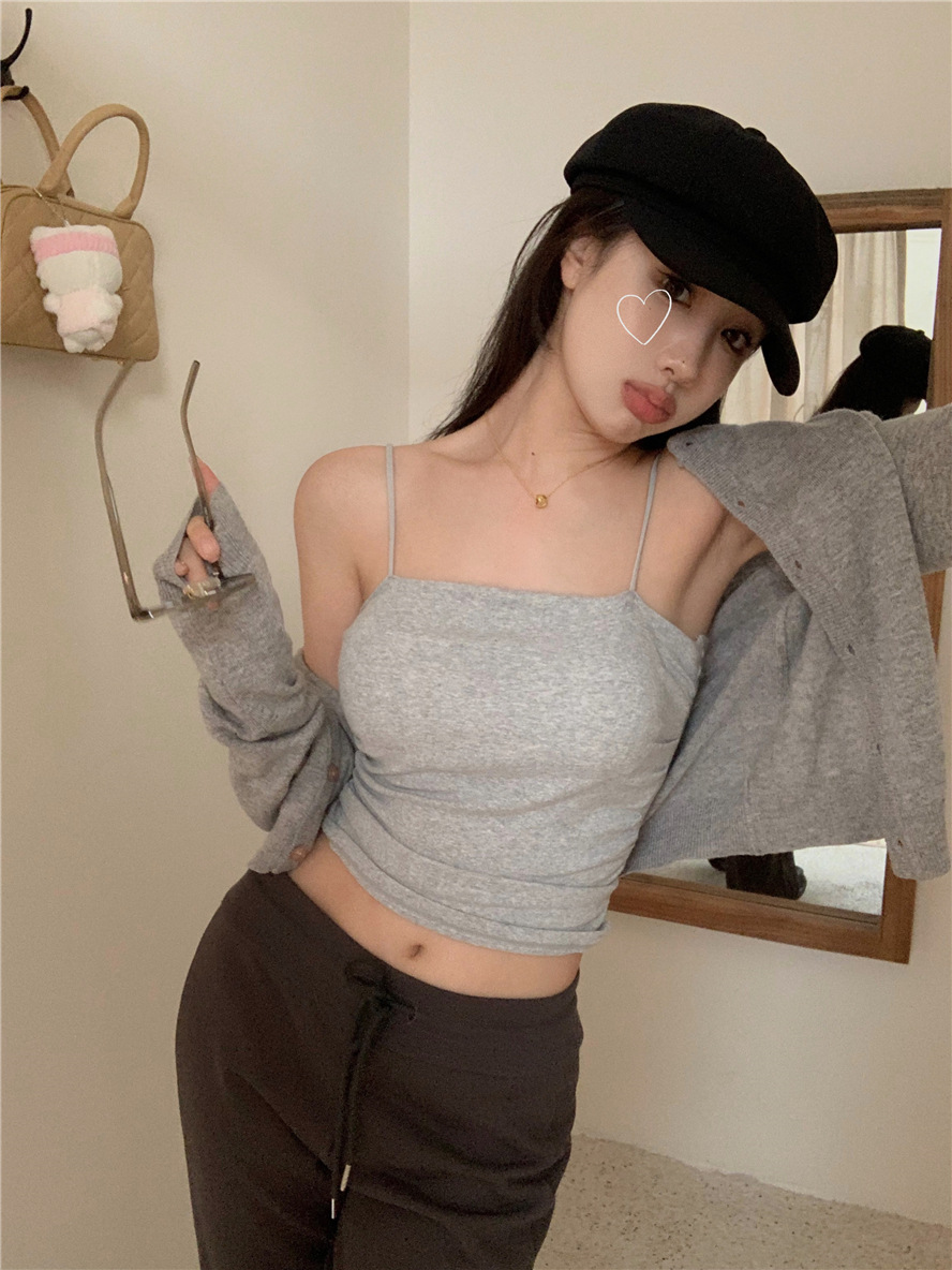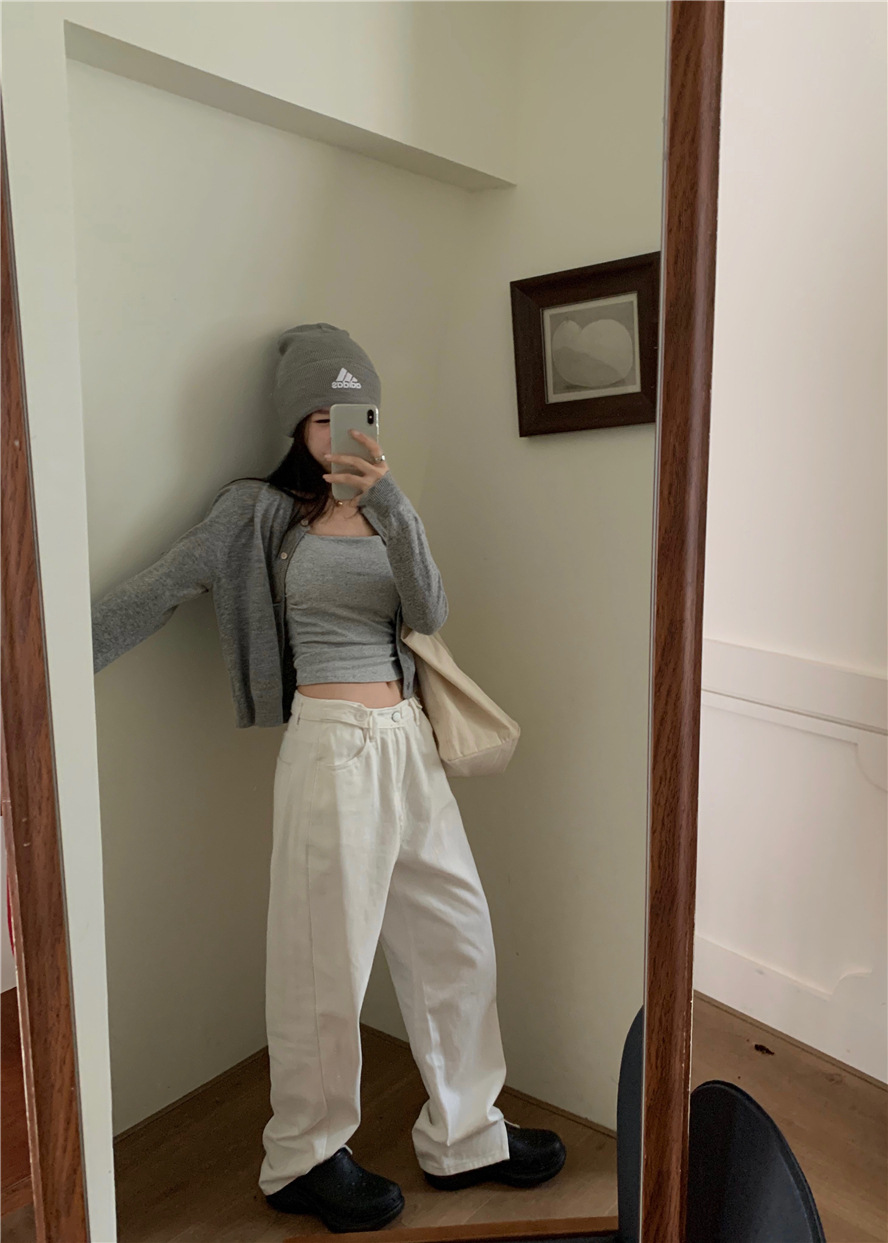 니트 카디건 재킷 여성 봄, 가을 새로운 스타일 몸집이 작은 슬림 슬림 회색 스웨터와 짧은 탑