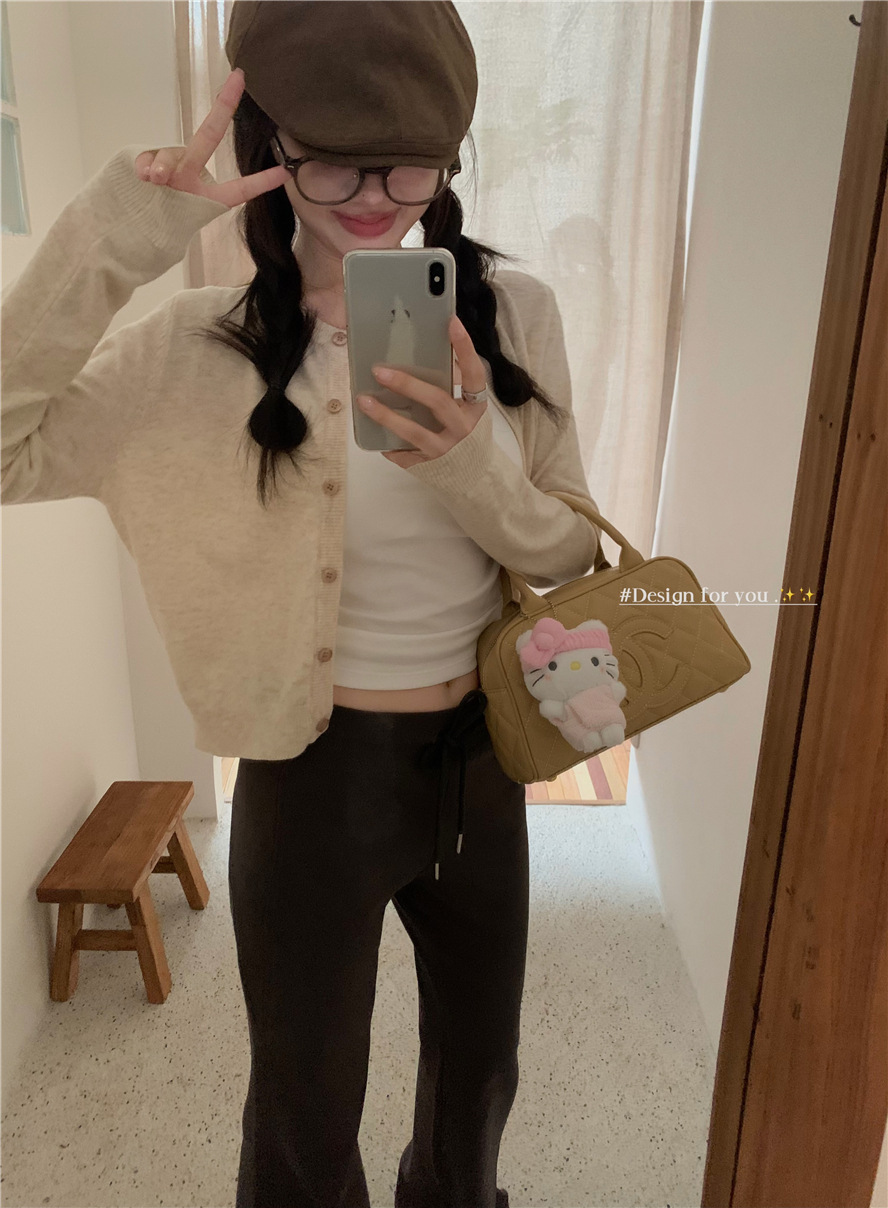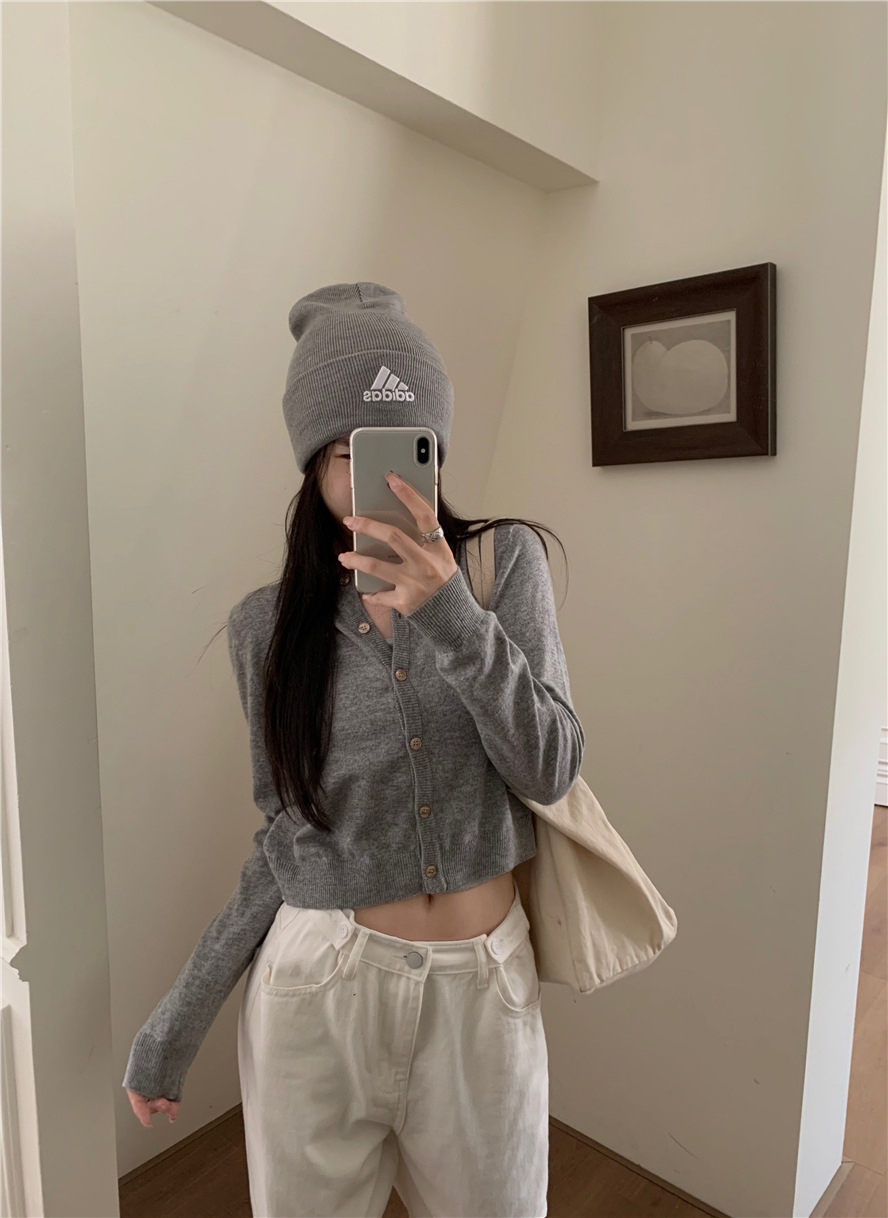 니트 카디건 재킷 여성 봄, 가을 새로운 스타일 몸집이 작은 슬림 슬림 회색 스웨터와 짧은 탑스토어 가기