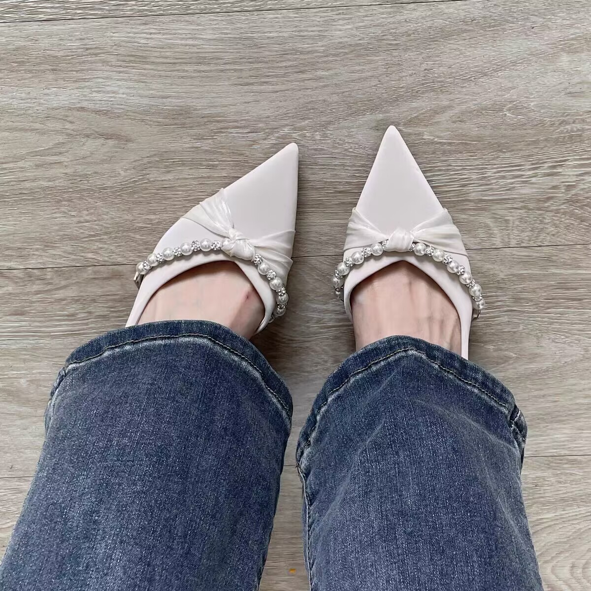 4、鞋面踩鞋帮时留下的一两个定位小针孔以及针头跳线