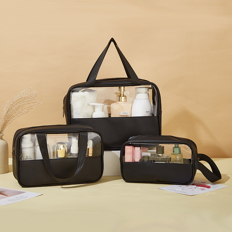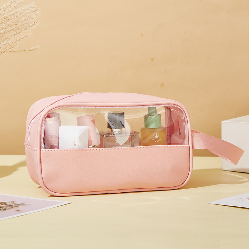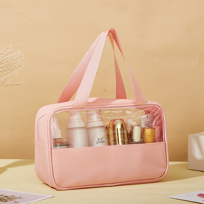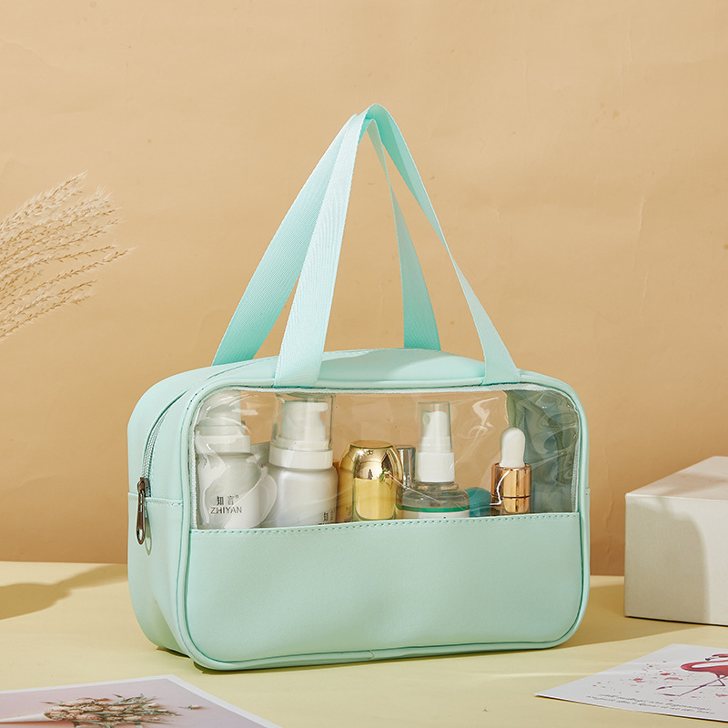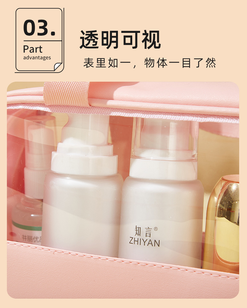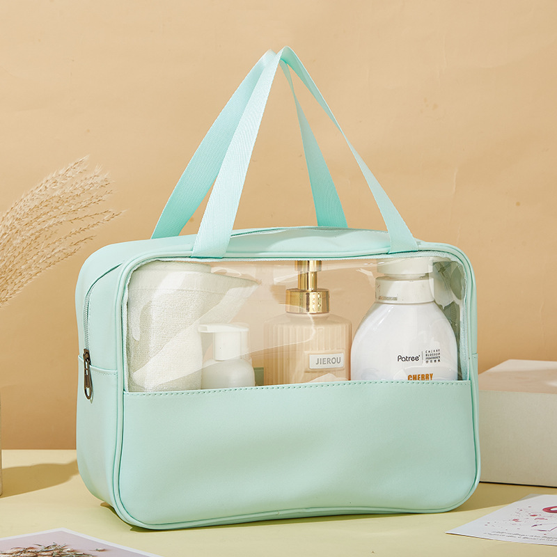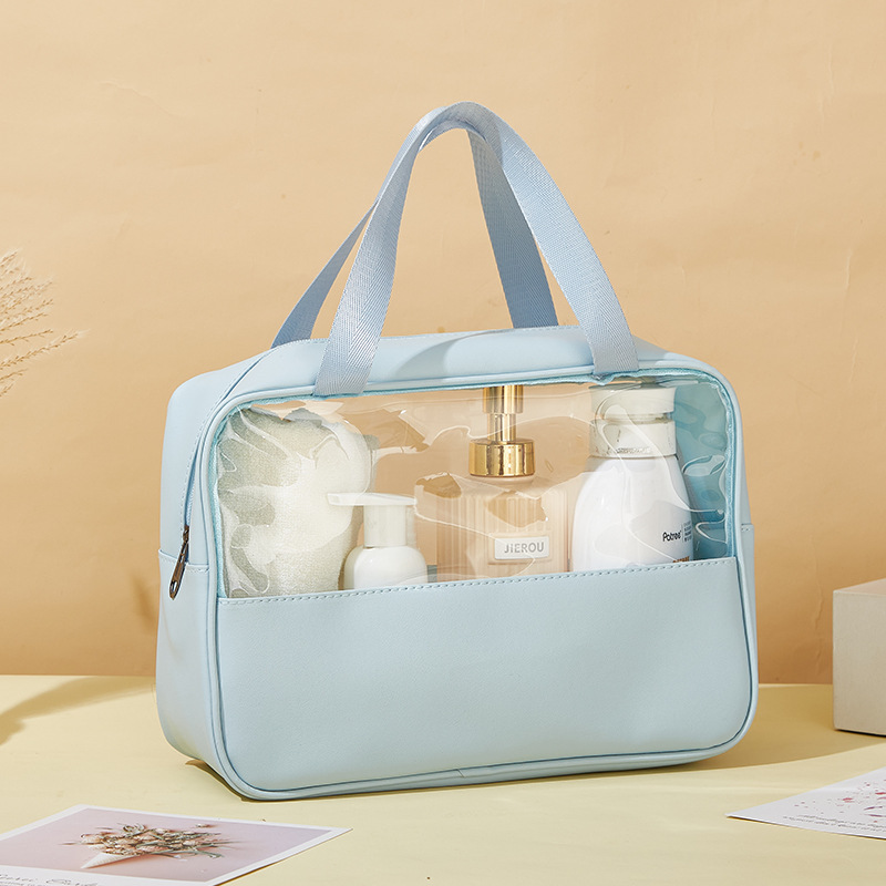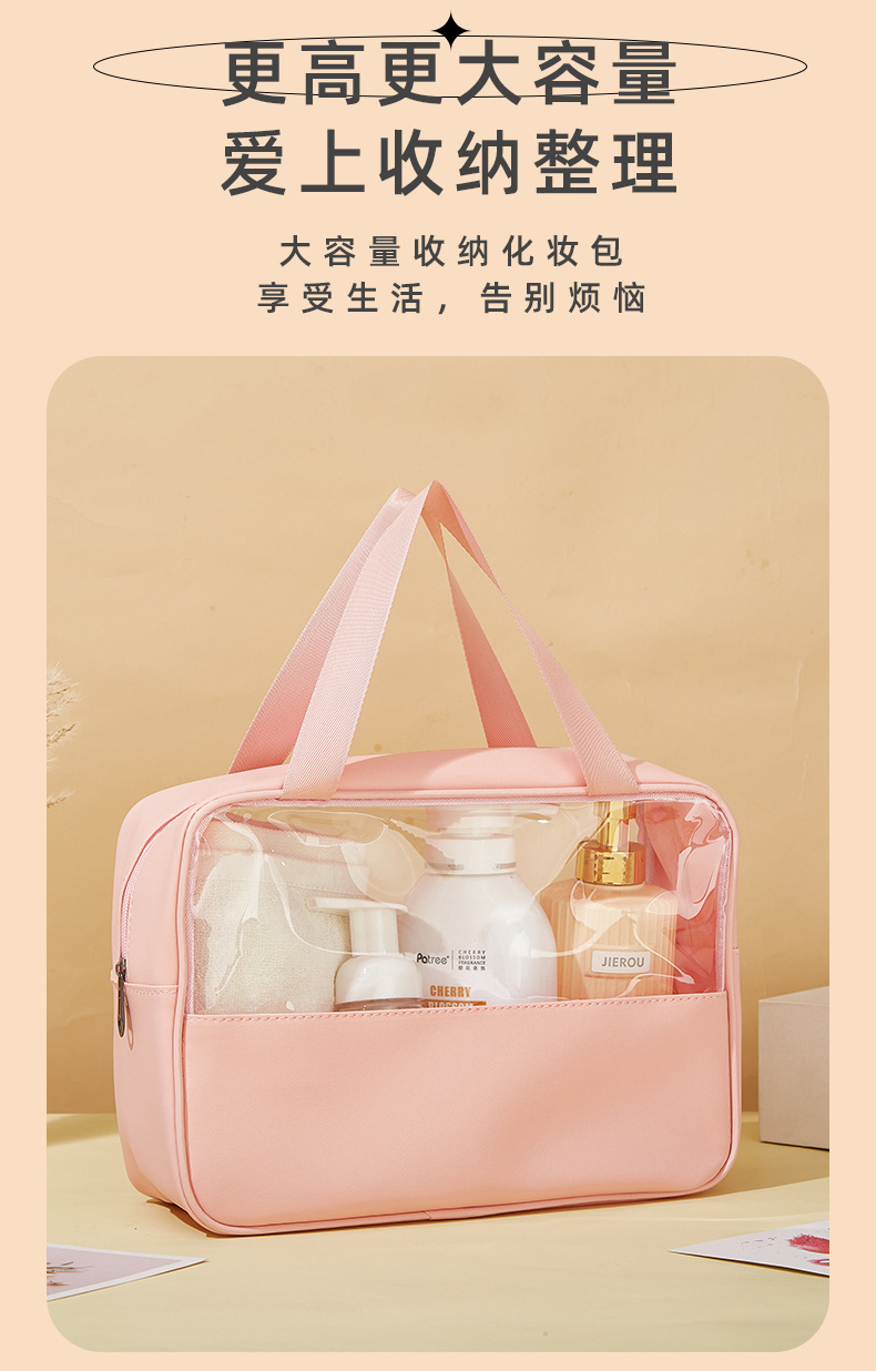 새로운 바느질 화장품 가방 대용량 방수 PVC 반투명 화장실 가방 PU 휴대용 여행 저장 가방