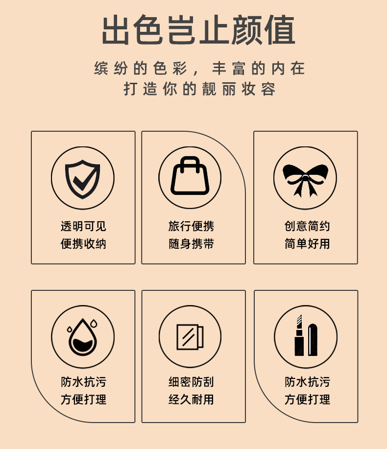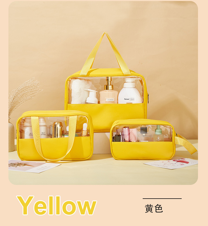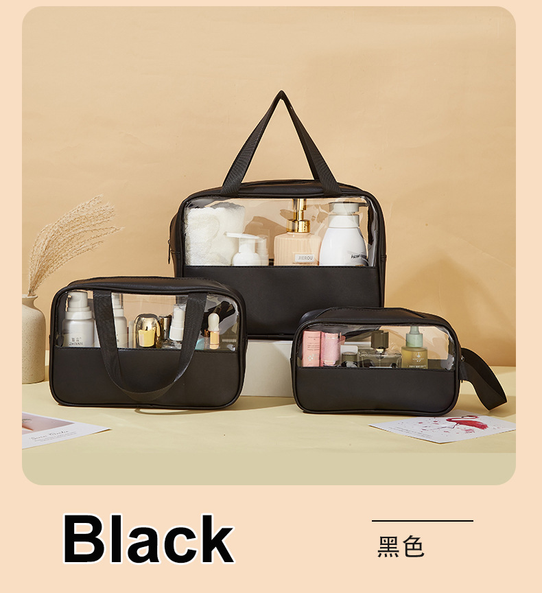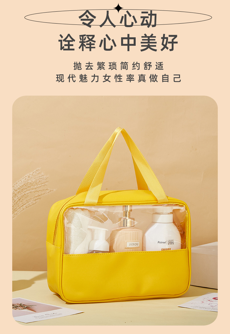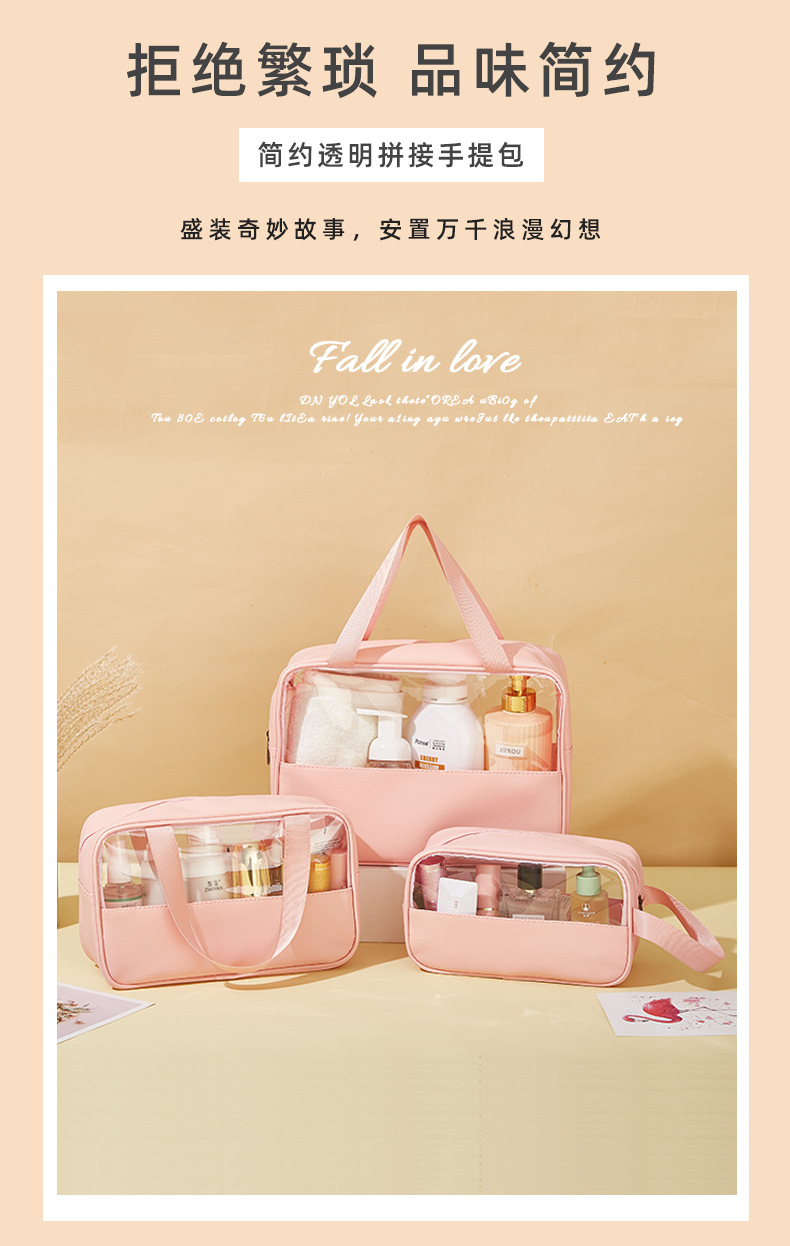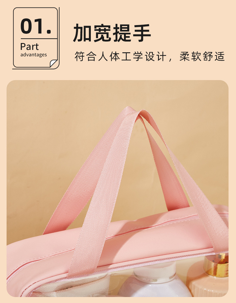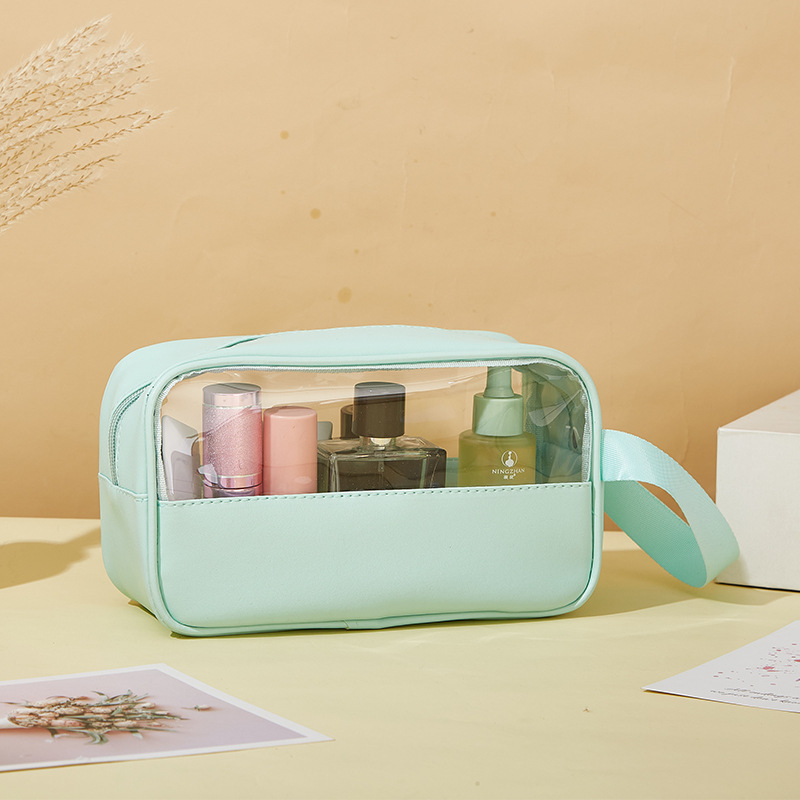 새로운 바느질 화장품 가방 대용량 방수 PVC 반투명 화장실 가방 PU 휴대용 여행 저장 가방