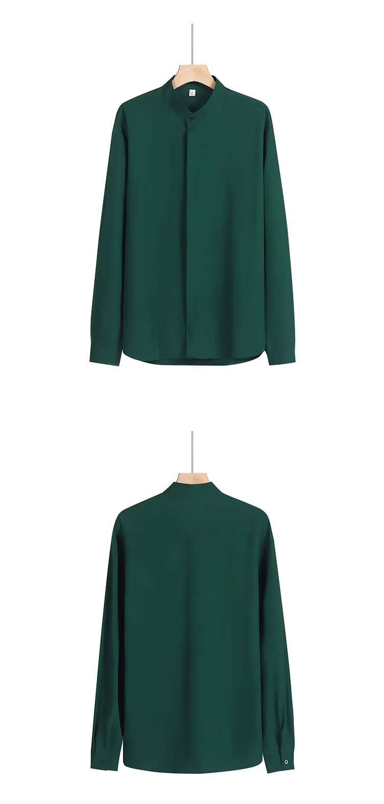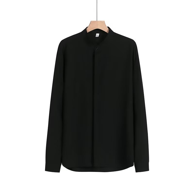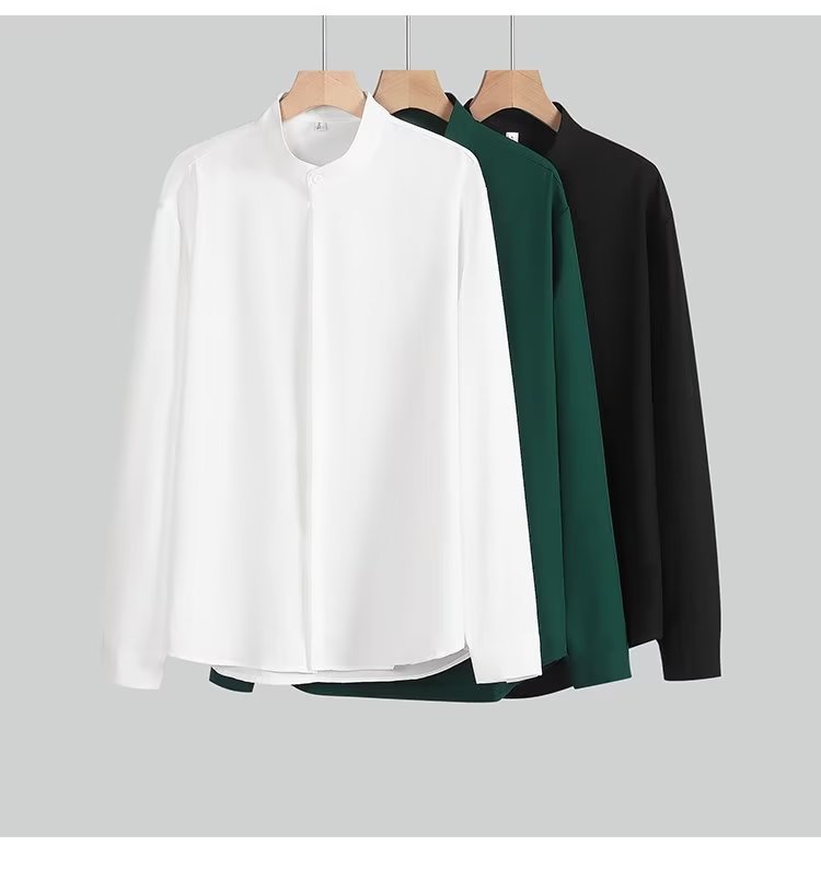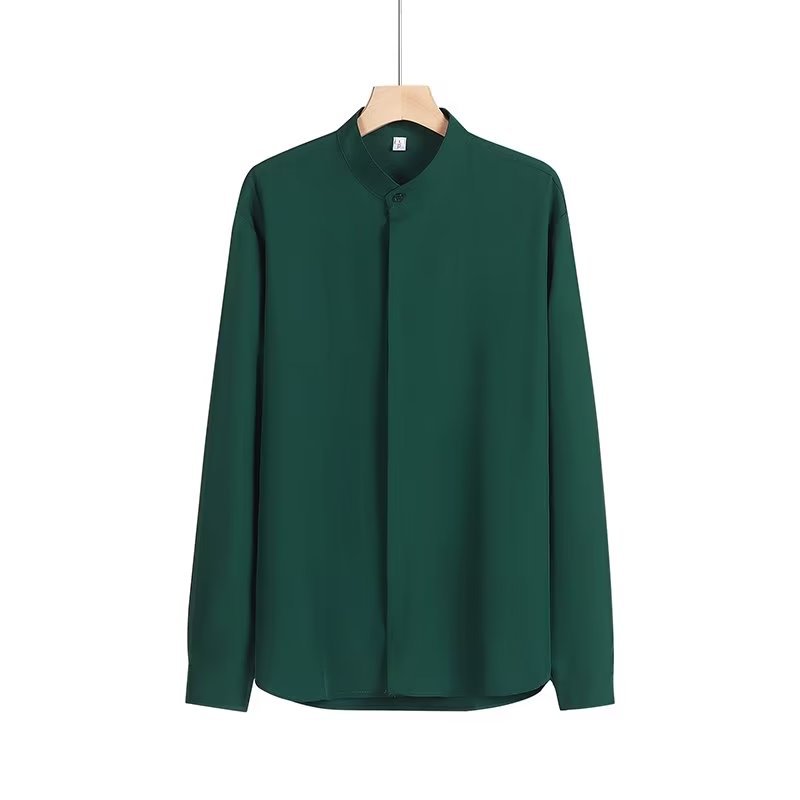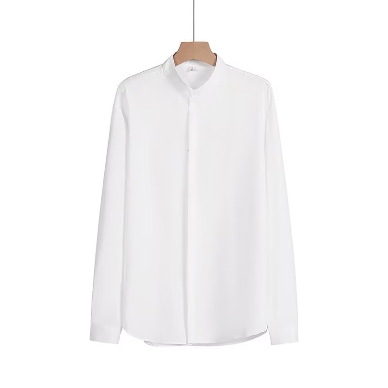 봄과 가을 패션 가벼운 럭셔리 중산 칼라 셔츠 긴 소매 남성 비즈니스 캐주얼 단색 간단한 다림질 셔츠
