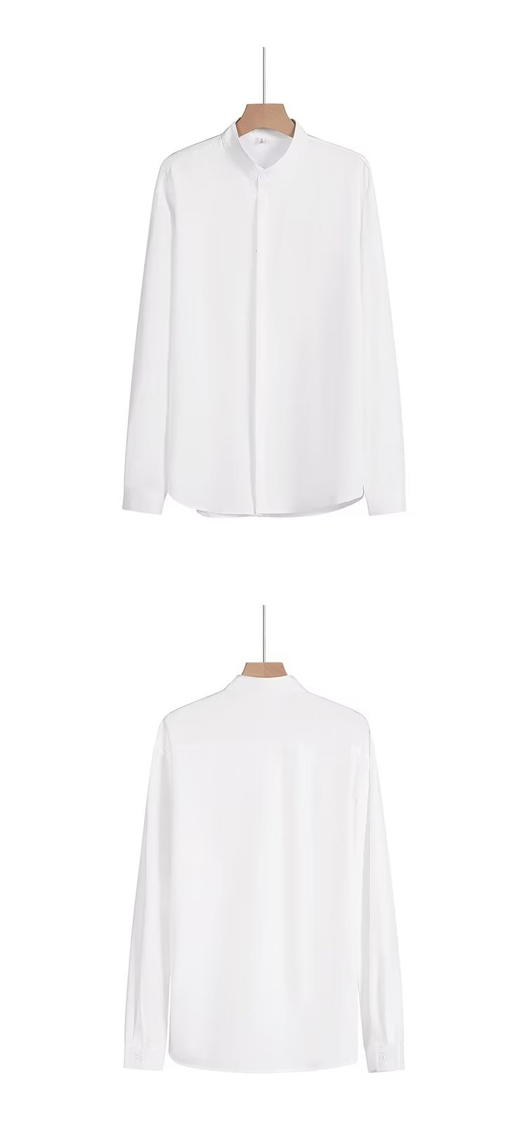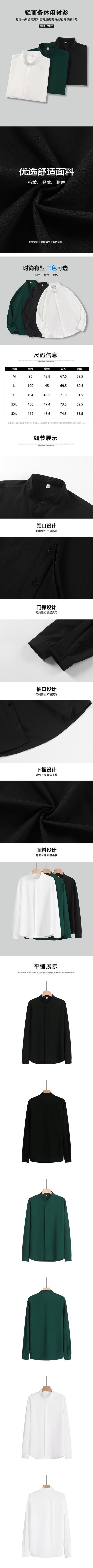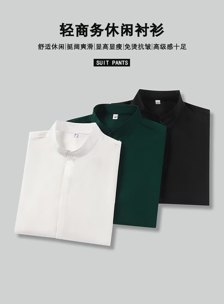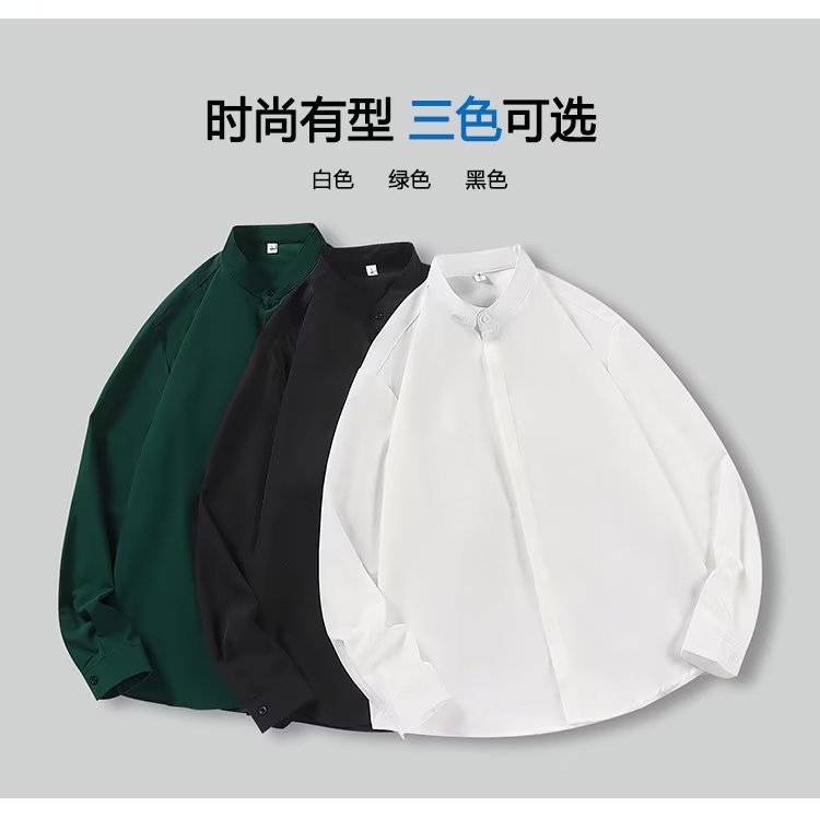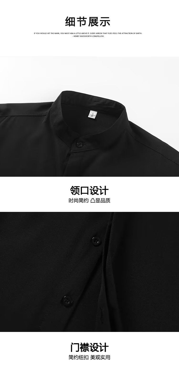 봄과 가을 패션 가벼운 럭셔리 중산 칼라 셔츠 긴 소매 남성 비즈니스 캐주얼 단색 간단한 다림질 셔츠스토어 가기