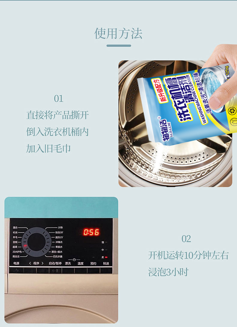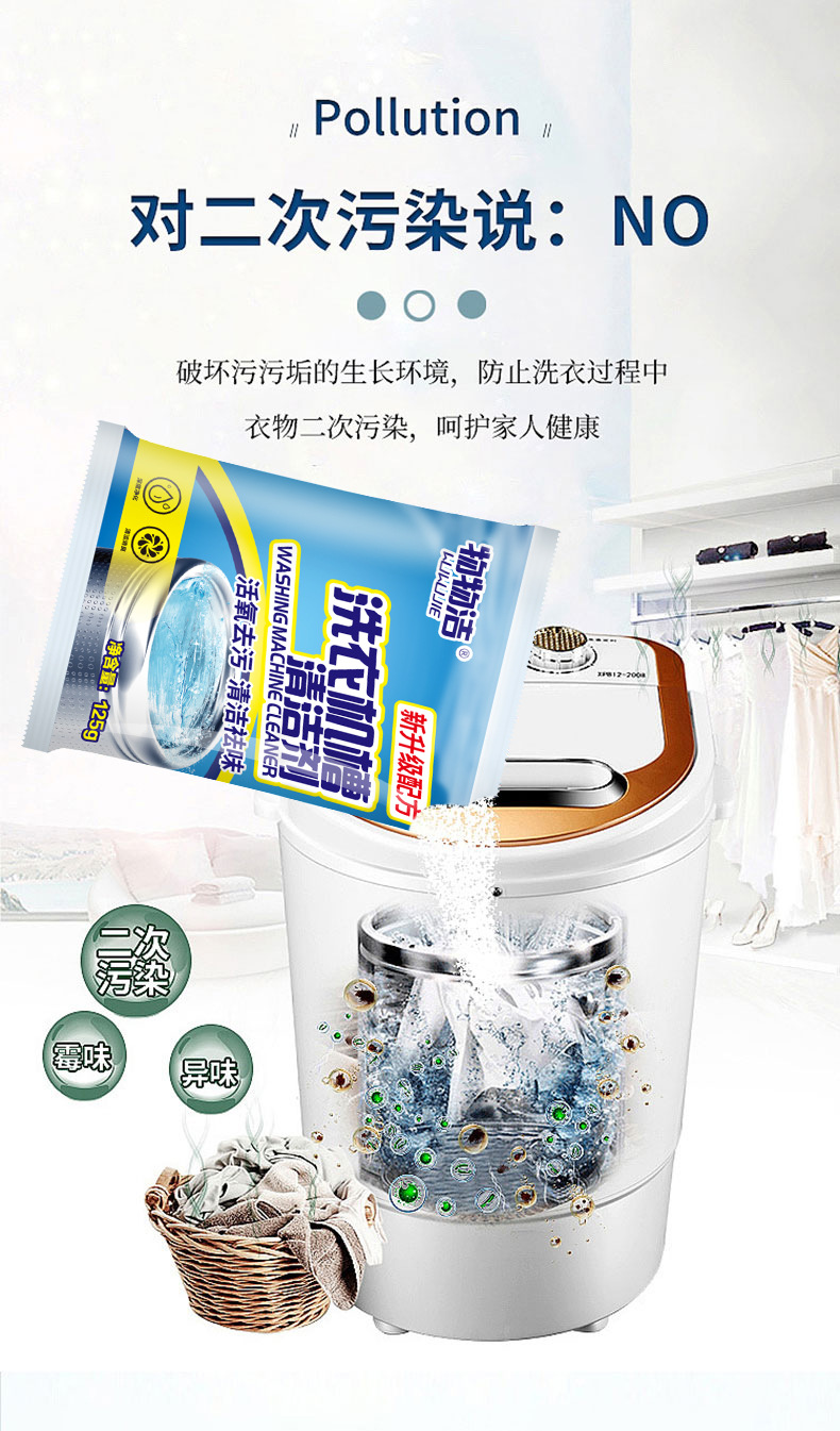 인터넷 유명 세탁기 탱크 청소기 125g 가정용 제거 냄새 제거 얼룩 자동 임펠러 롤러 오염 제거 분말스토어 가기