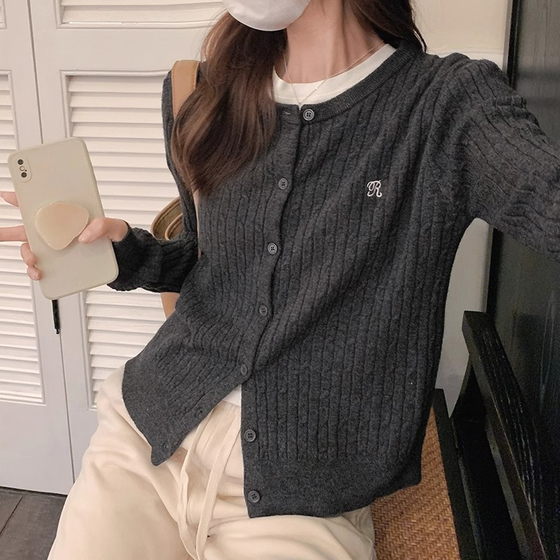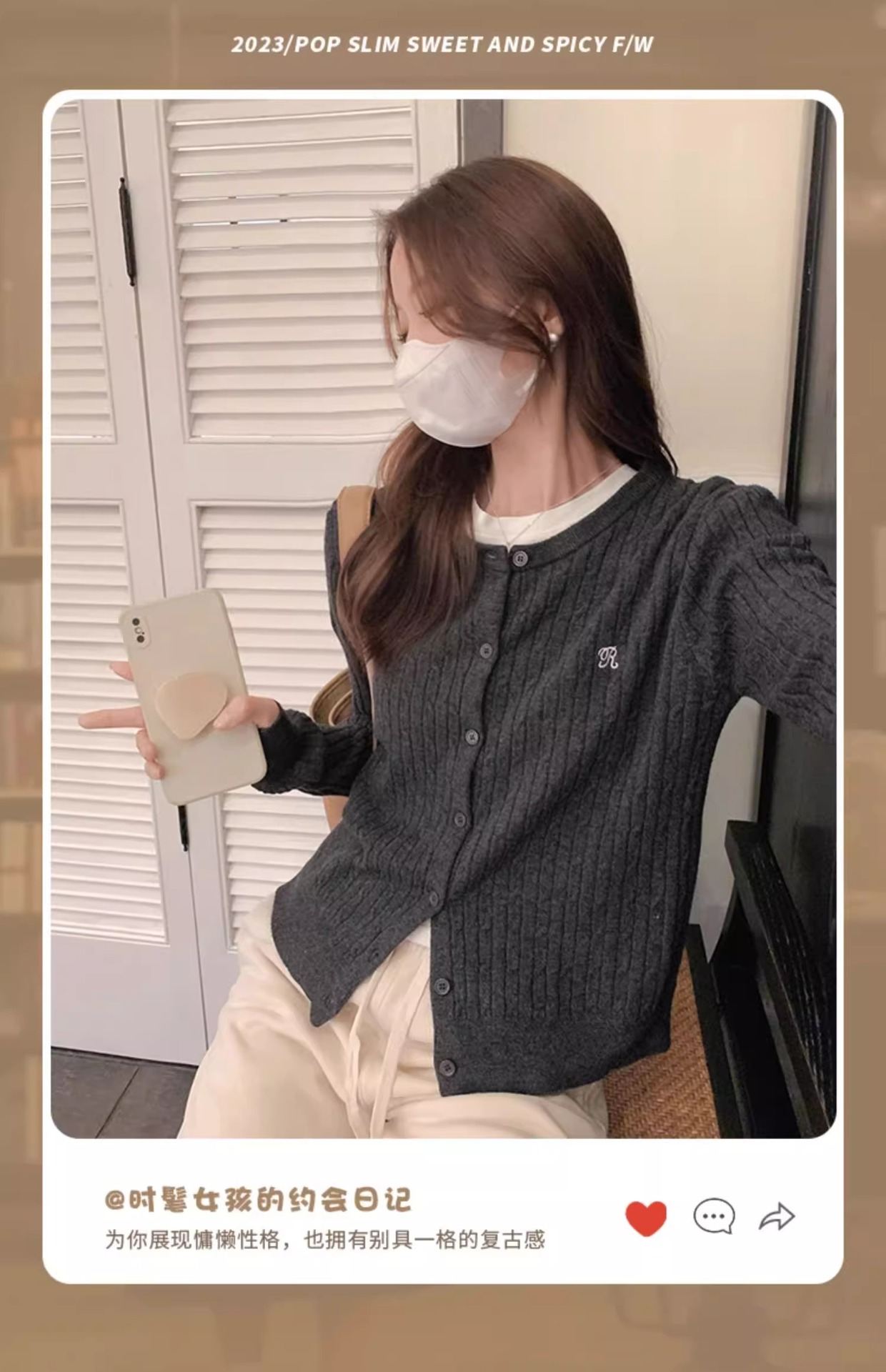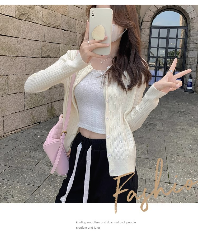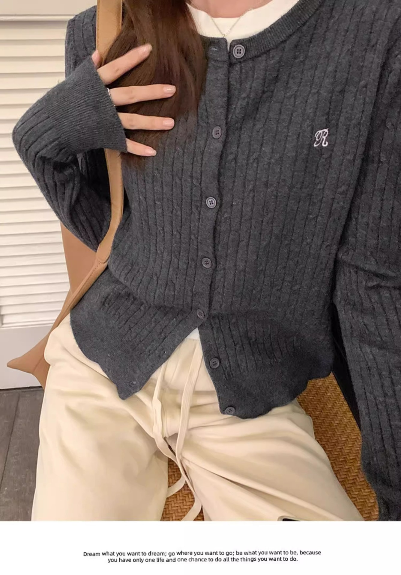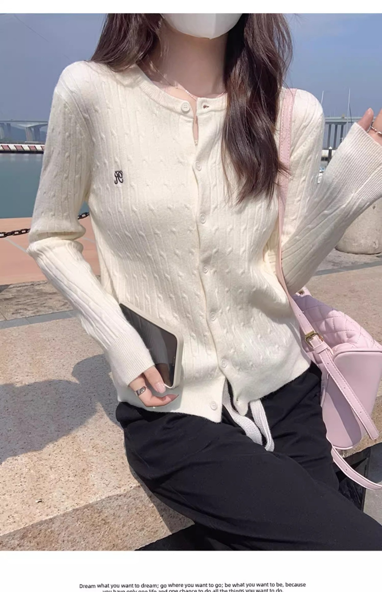 디자인 자수 트위스트 니트 가디건 여자 한국 스타일 대학 스타일 달콤한 겉옷 모든 일치 가을과 겨울 어깨 스몰 탑