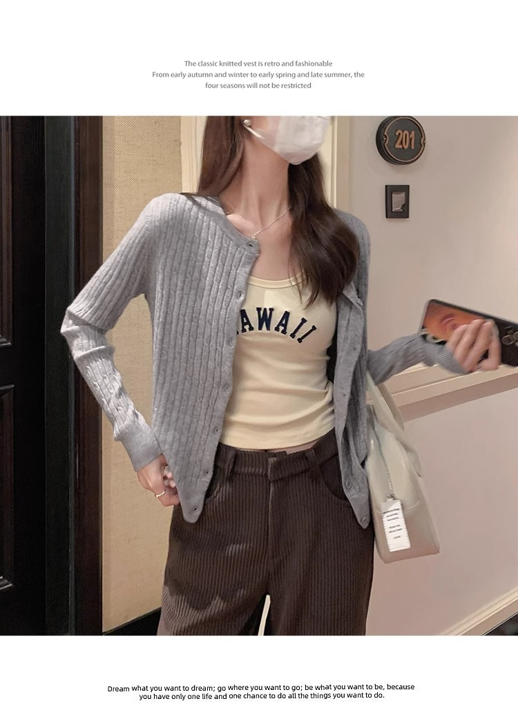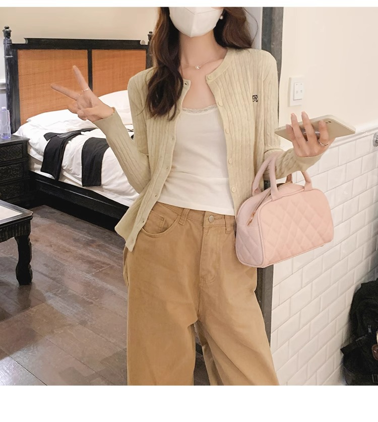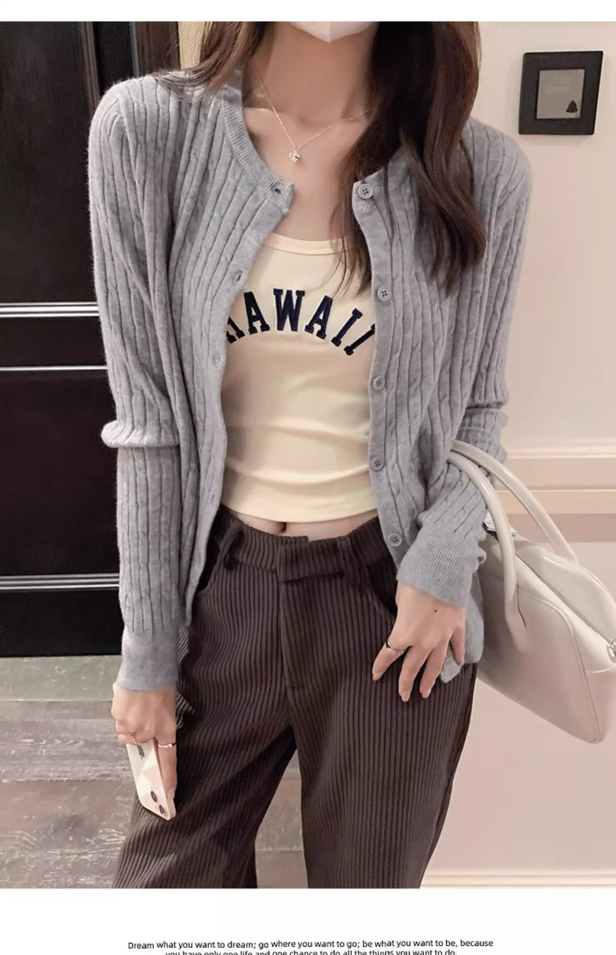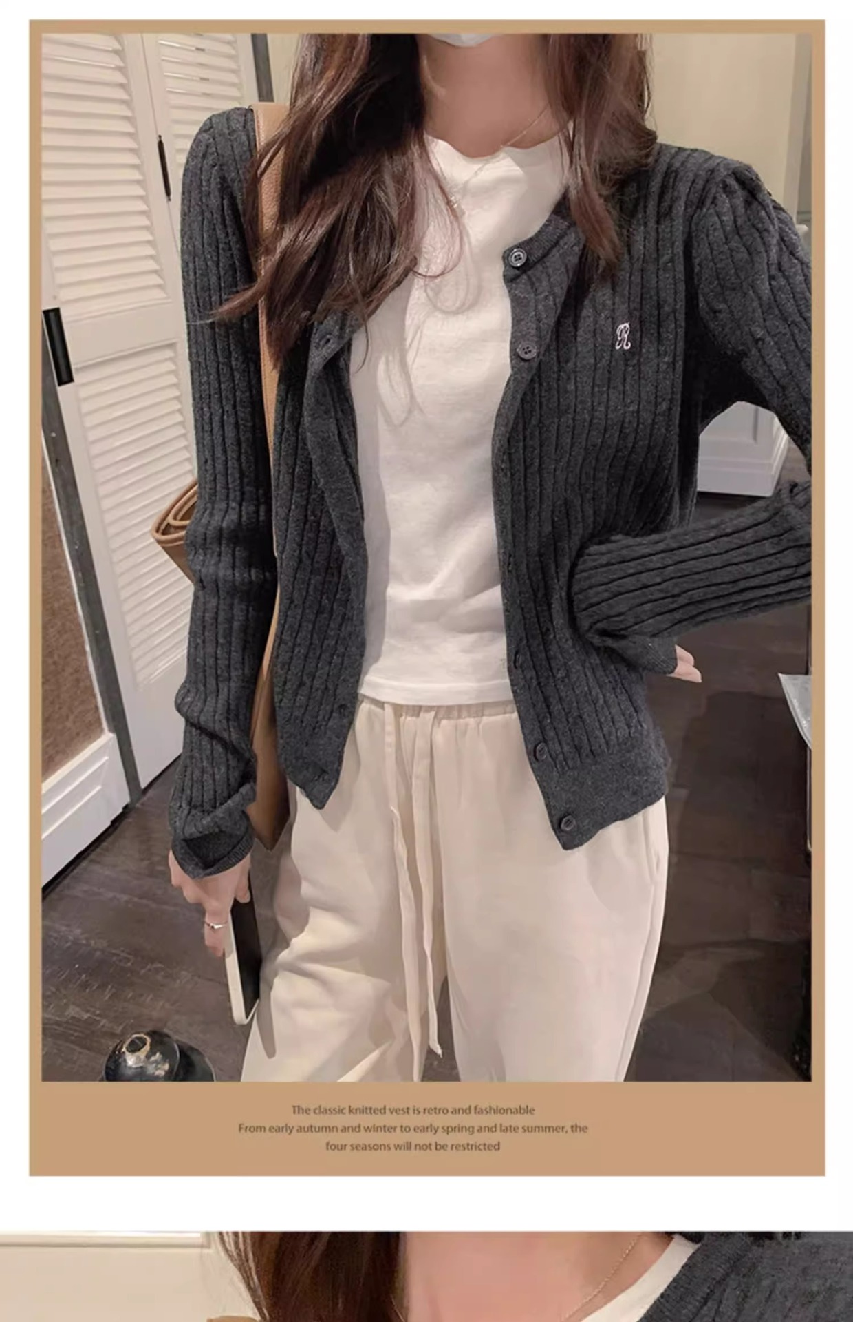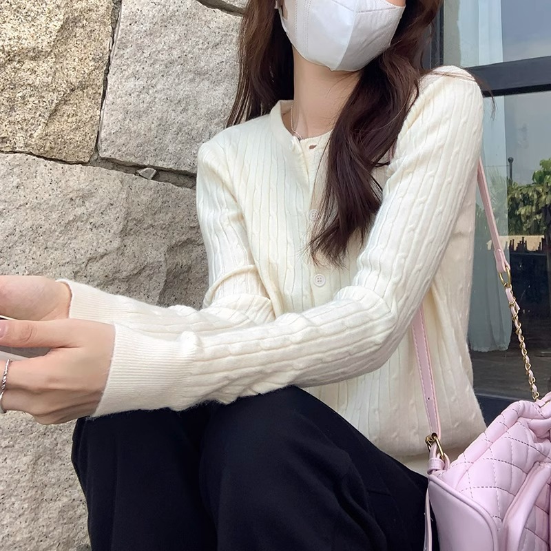 디자인 자수 트위스트 니트 가디건 여자 한국 스타일 대학 스타일 달콤한 겉옷 모든 일치 가을과 겨울 어깨 스몰 탑