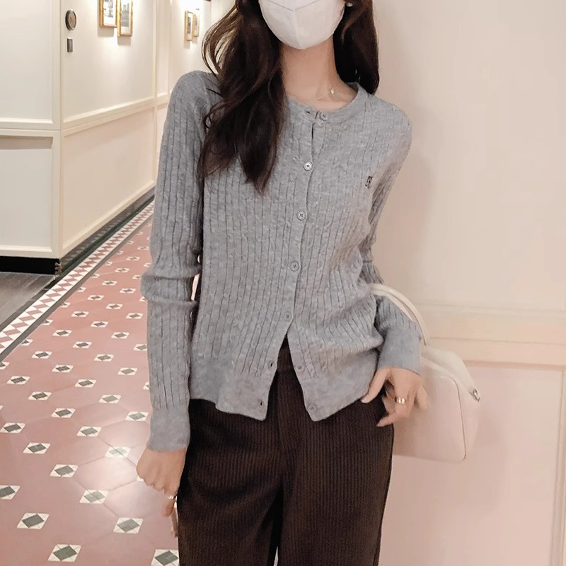 디자인 자수 트위스트 니트 가디건 여자 한국 스타일 대학 스타일 달콤한 겉옷 모든 일치 가을과 겨울 어깨 스몰 탑스토어 가기