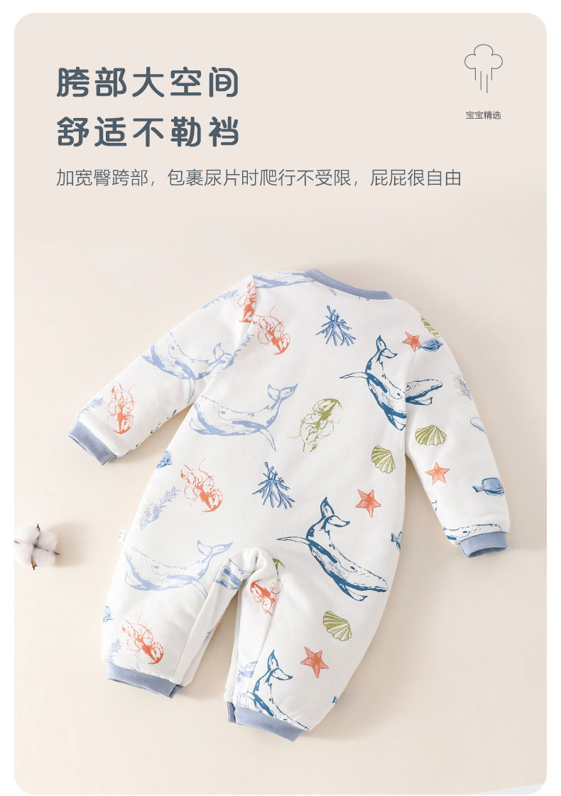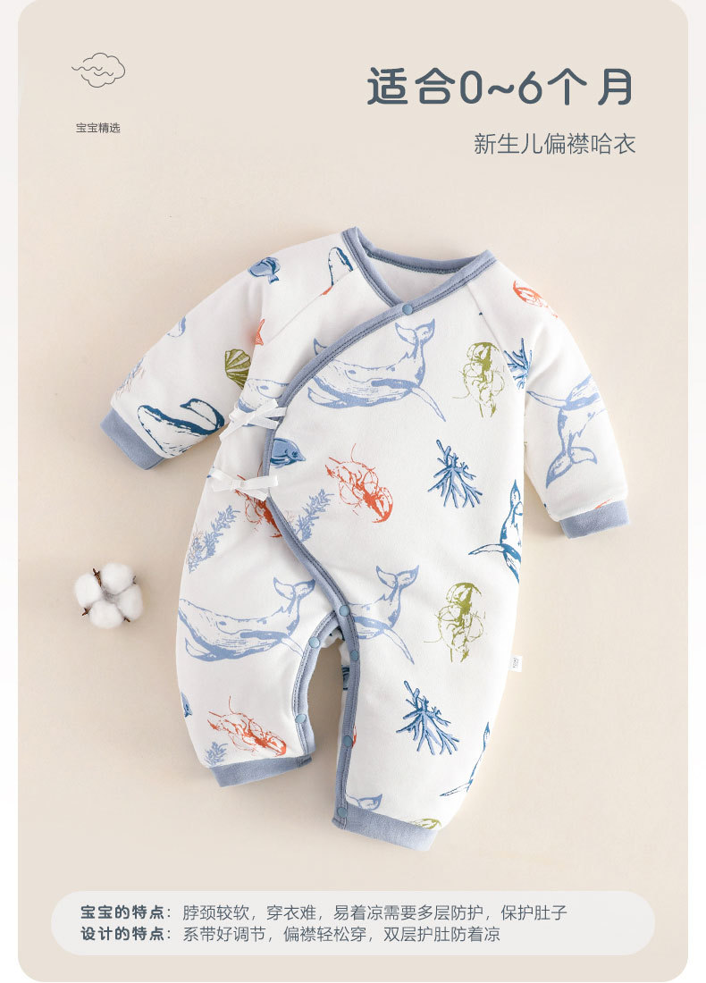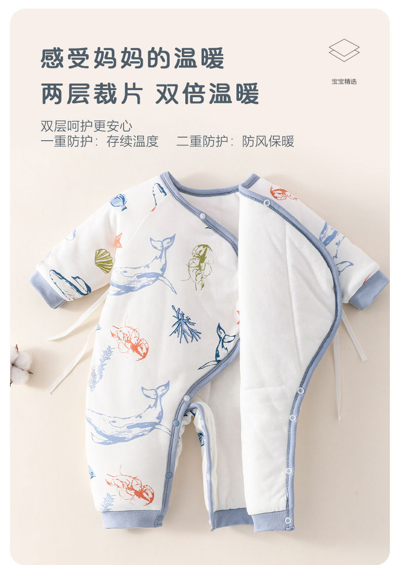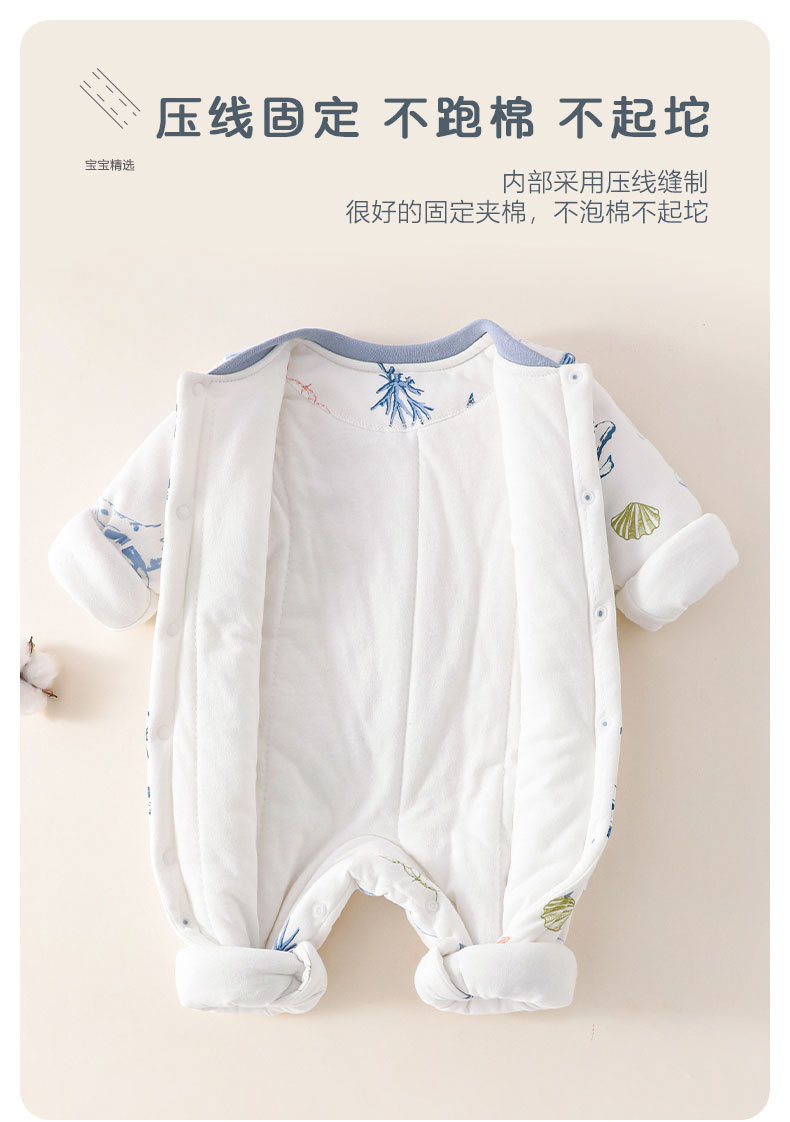 婴儿连体衣夹棉外出长袖无骨和尚服 新生儿棉衣秋冬季保暖蝴蝶衣