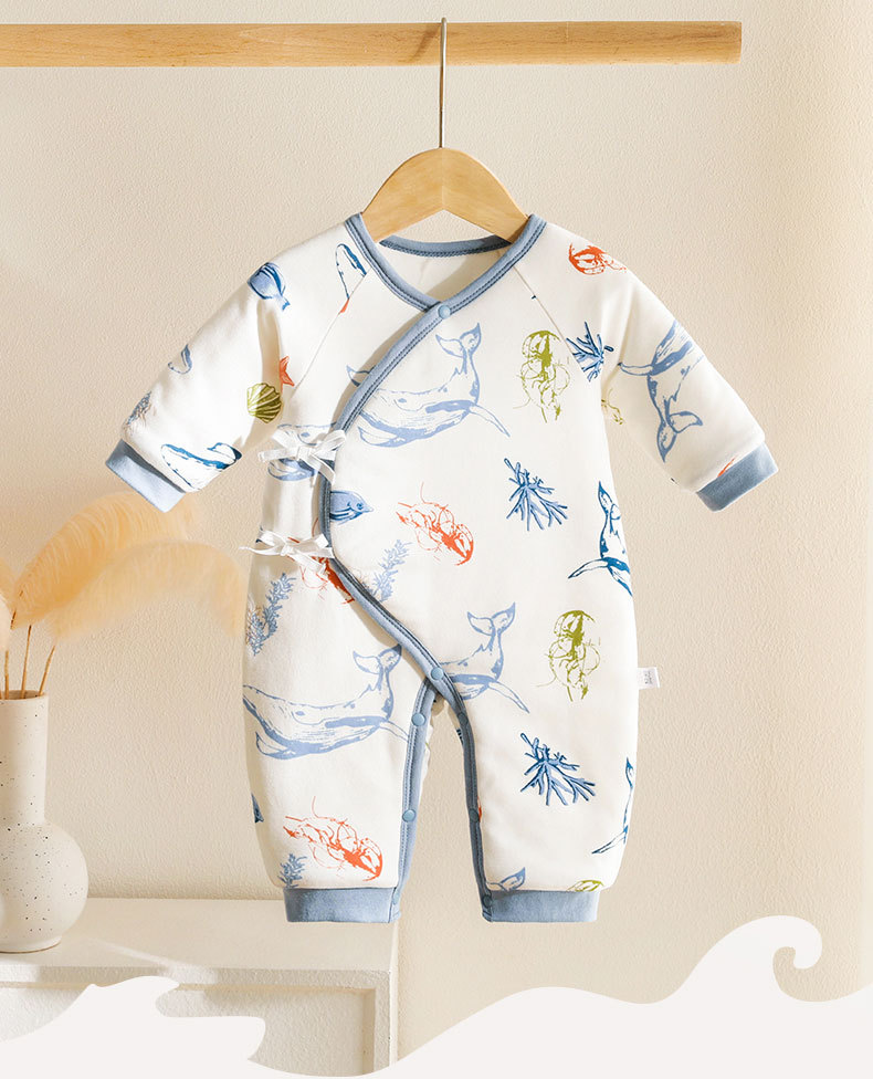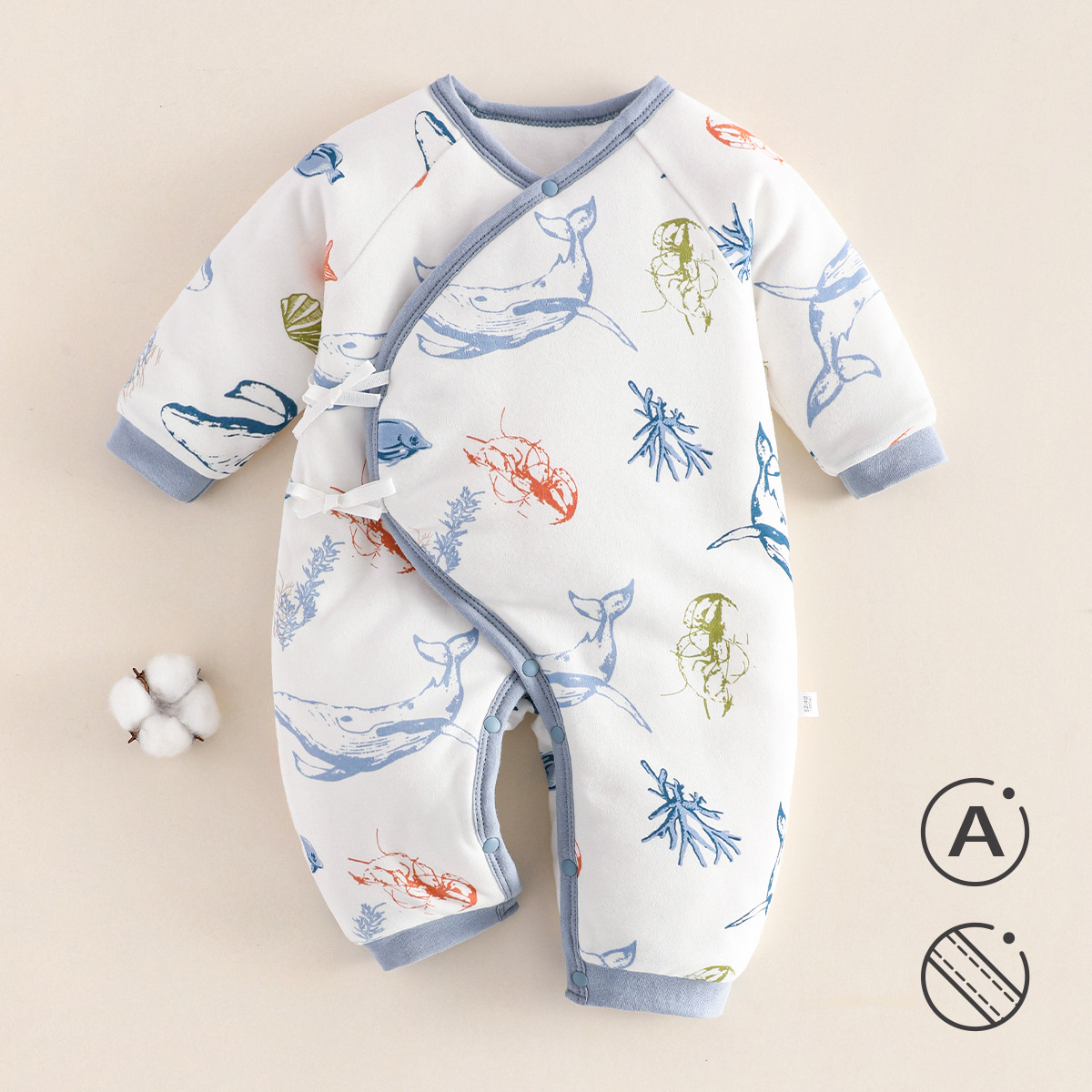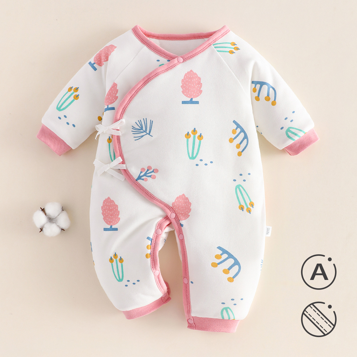 아기 점프 슈트 코튼 패딩 고 아웃 긴팔 뼈없는 스님 의류 신생아 코튼 패딩 의류 가을과 겨울 따뜻한 나비 의류