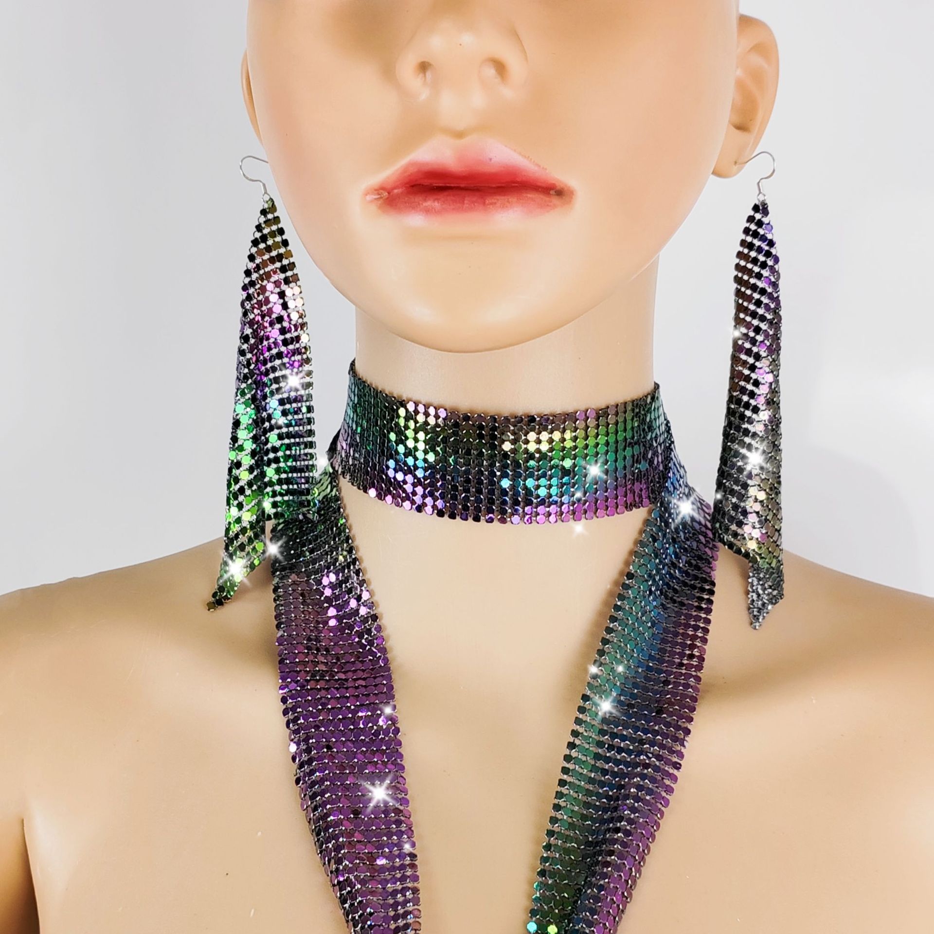 아마존 패션 조커 작은 삼각형 가변 스팽글 귀걸이 925 실버 바늘 과장된 귀걸이 보석 제조 업체 도매