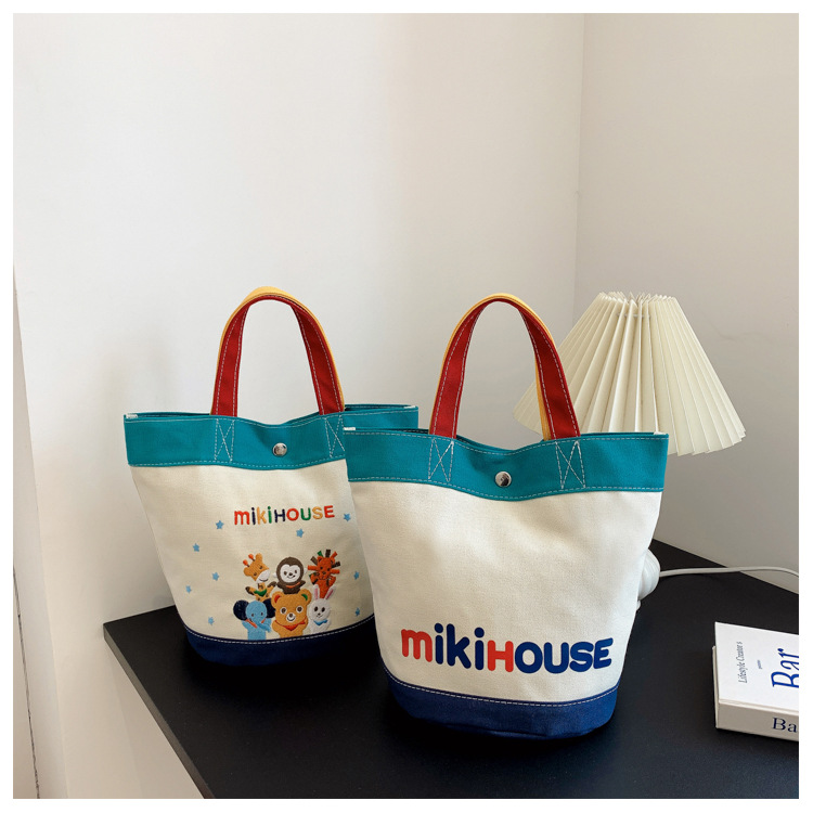 새로운 만화 캔버스 버킷 백 대비 색상 패션 핸드백 빨간 책 폭발성 작은 가방 화장품 가방 여성용 도시락 가방