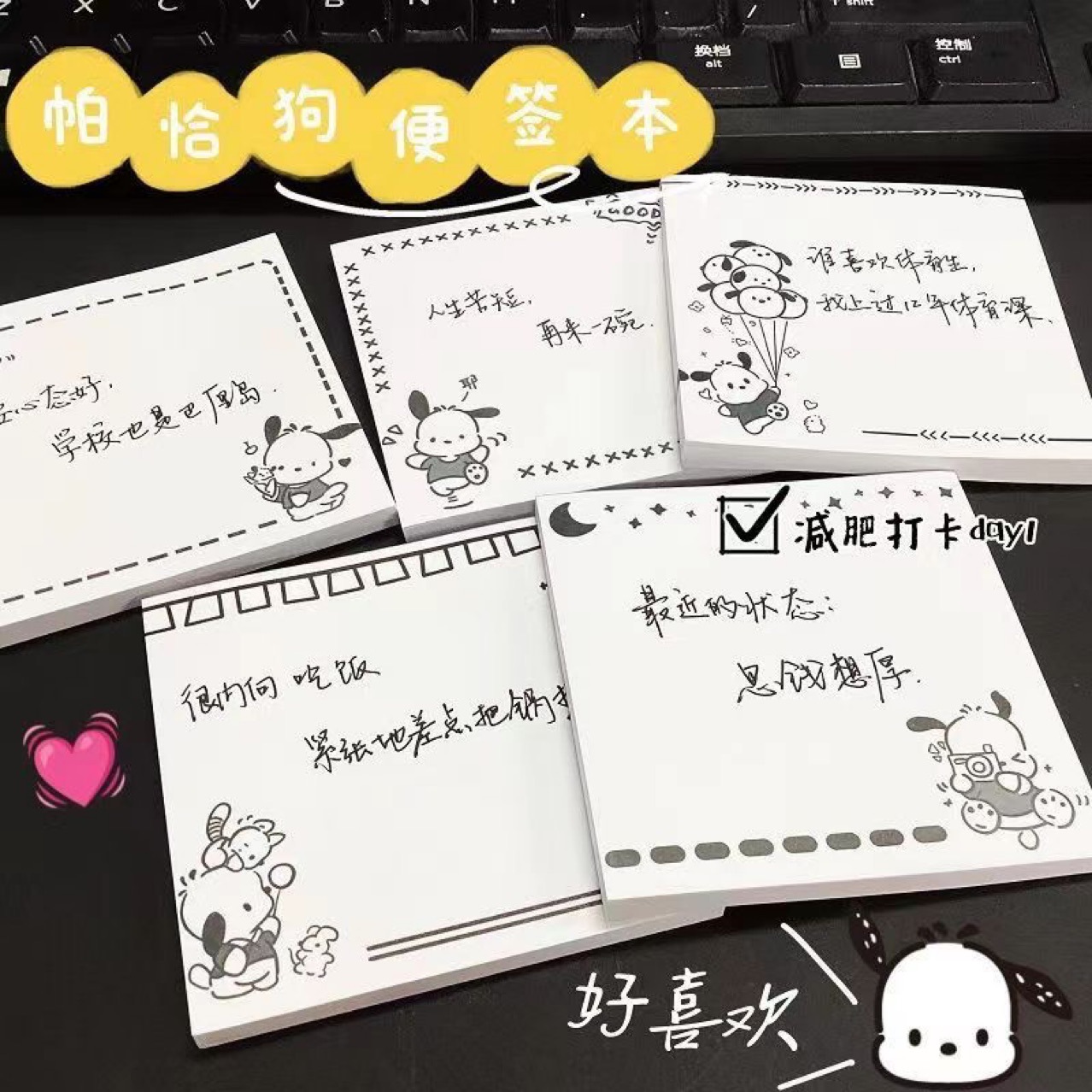 간단한 흑백 인 스타일 귀여운 Pacha 개 끈적 끈적 끈적 끈적 끈적 끈적한 높은 찾고 인기있는 학생 신선한 학습스토어 가기