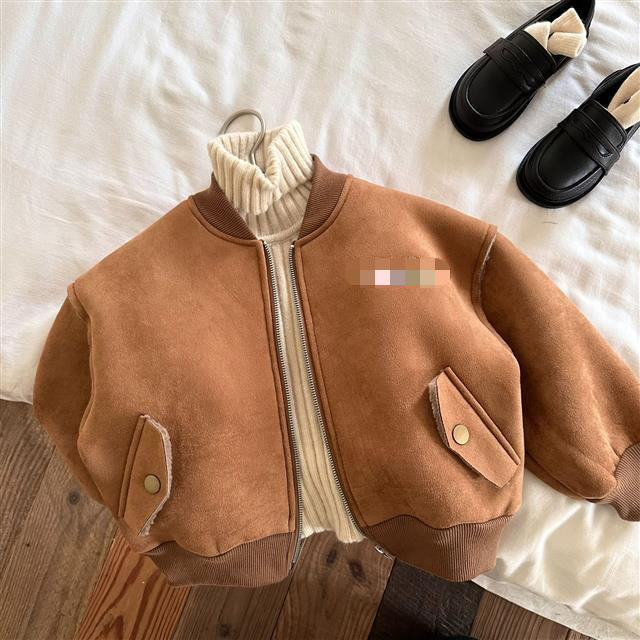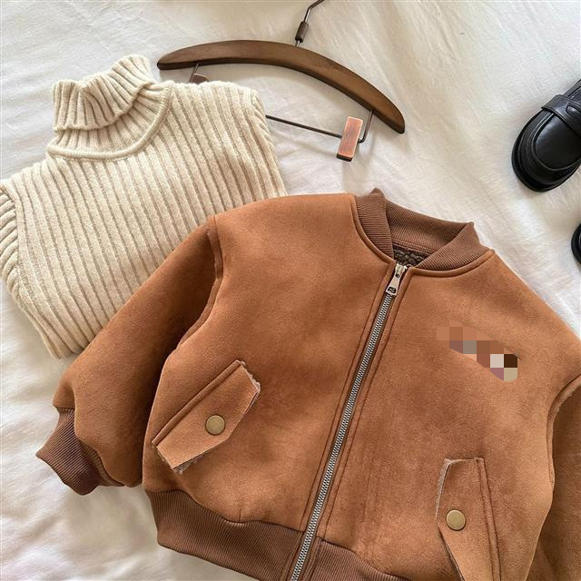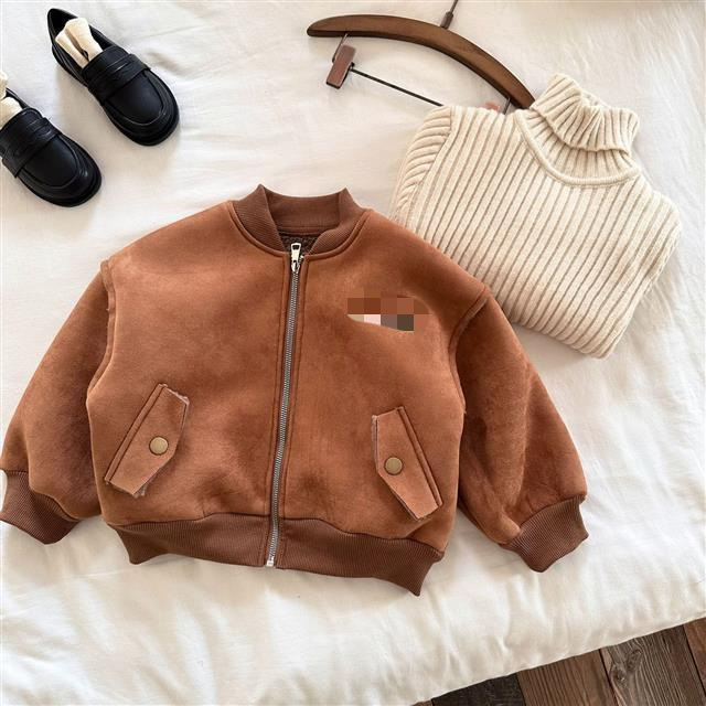 어린이 기모 재킷 2023 가을과 겨울 두꺼운 따뜻한 수 놓은 야구 세트 소년 소녀 아기의 지퍼 셔츠 유행 한국 스타일