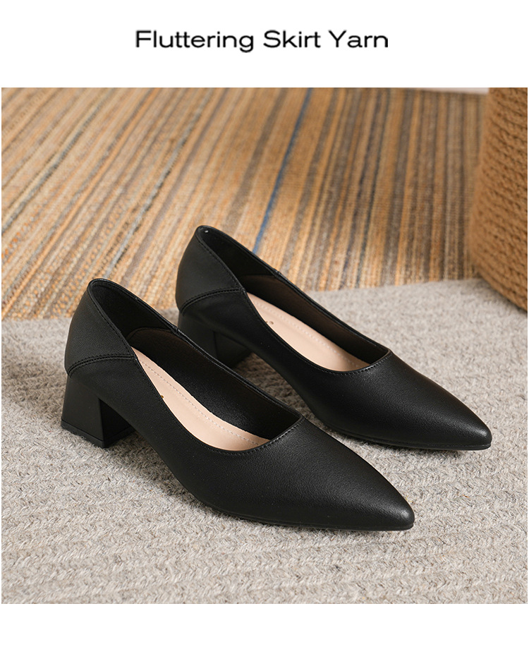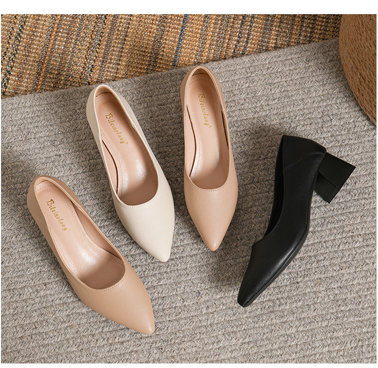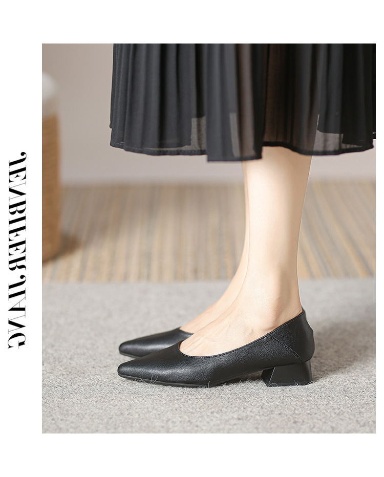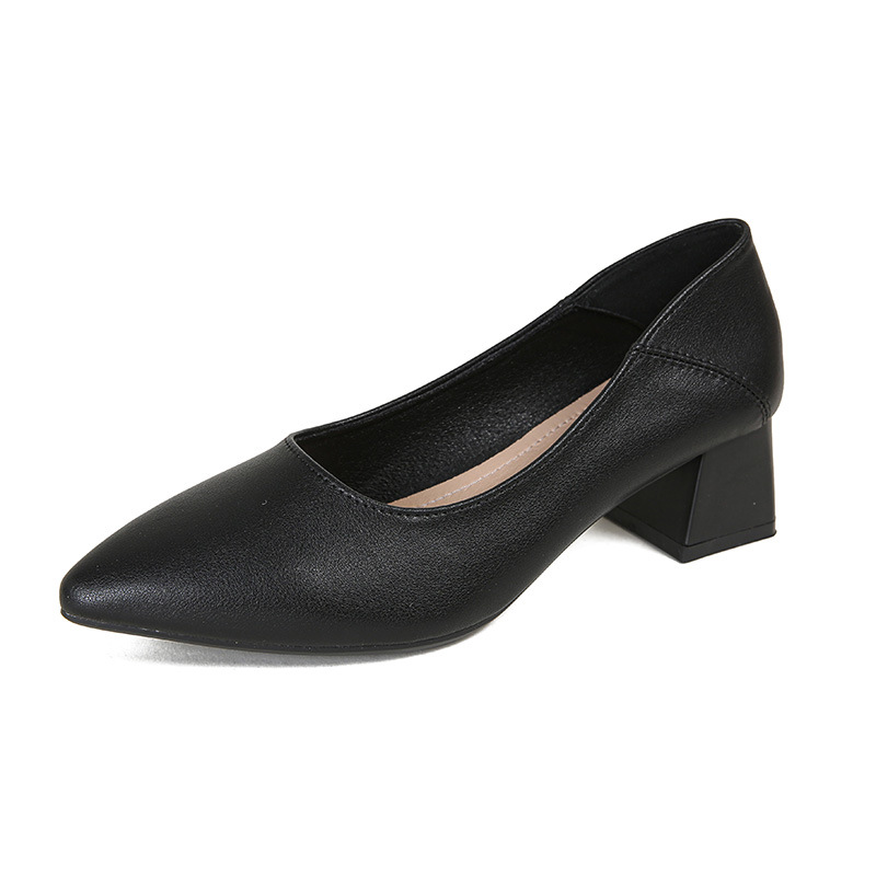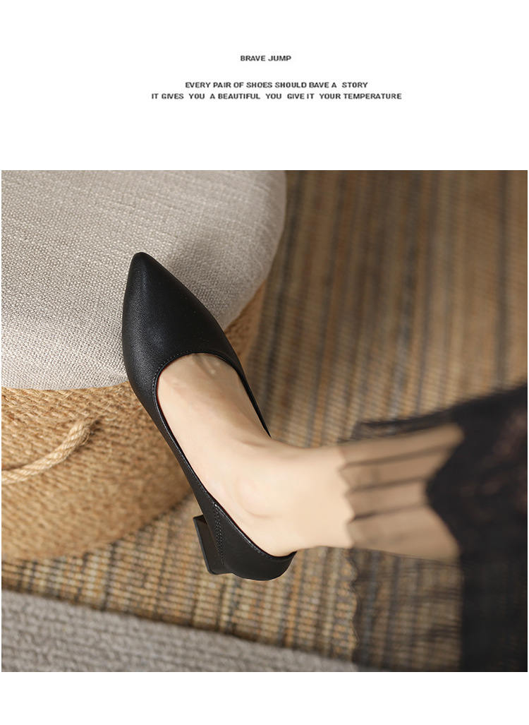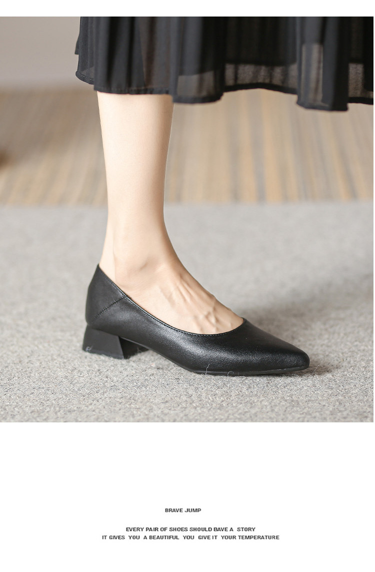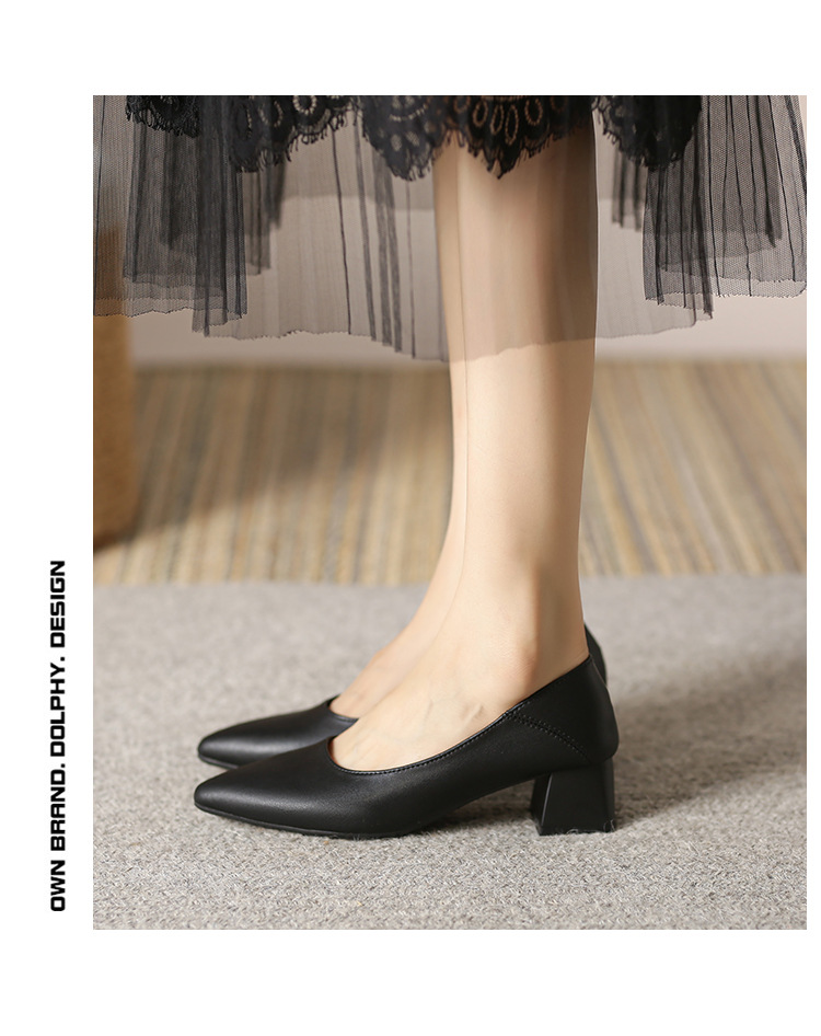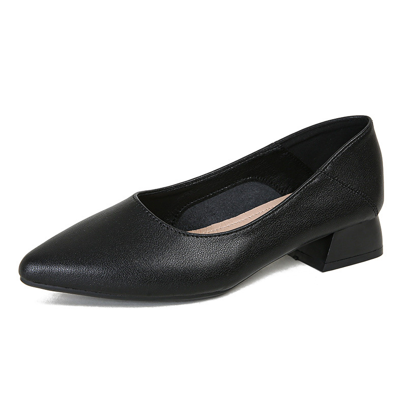 뾰족한 청키 힐 얕은 입 싱글 레이어 신발 여성용 2023 봄과 가을 새로운 사이버 연예인 모든 매치 소프트 로우 힐 신발 블랙 작업 신발스토어 가기