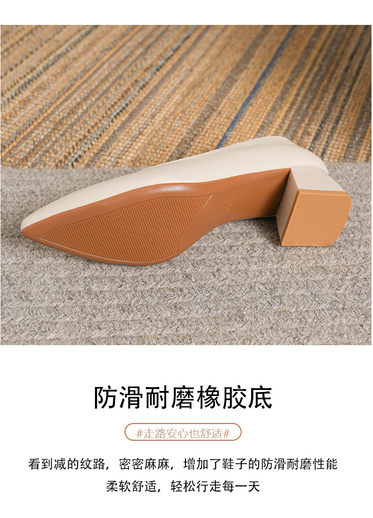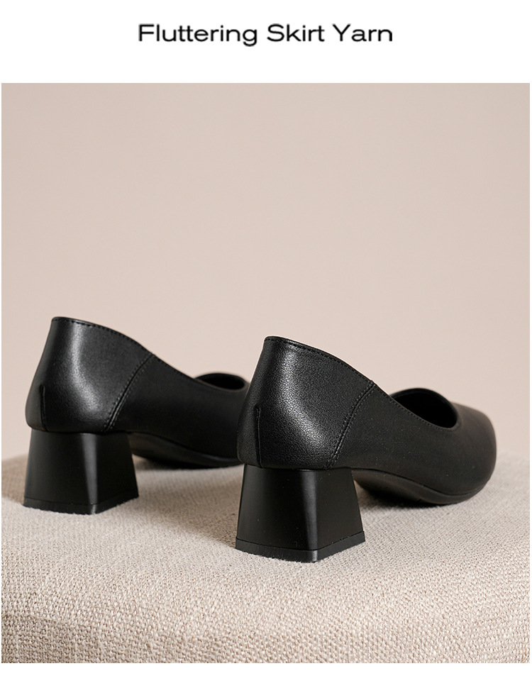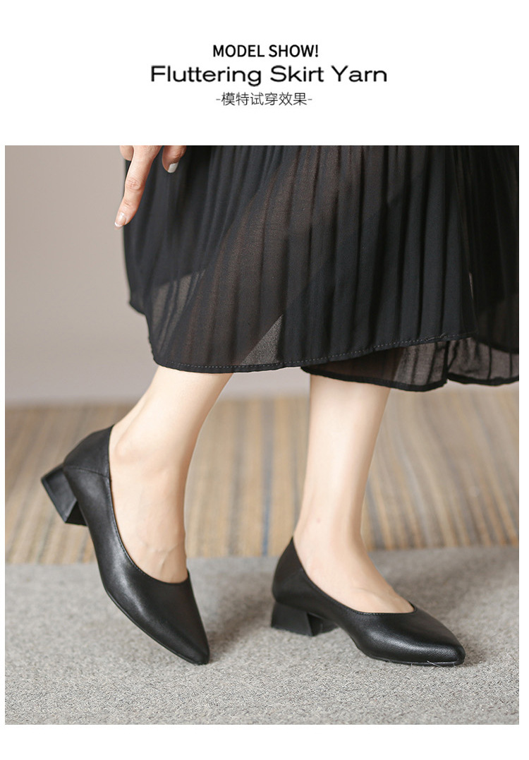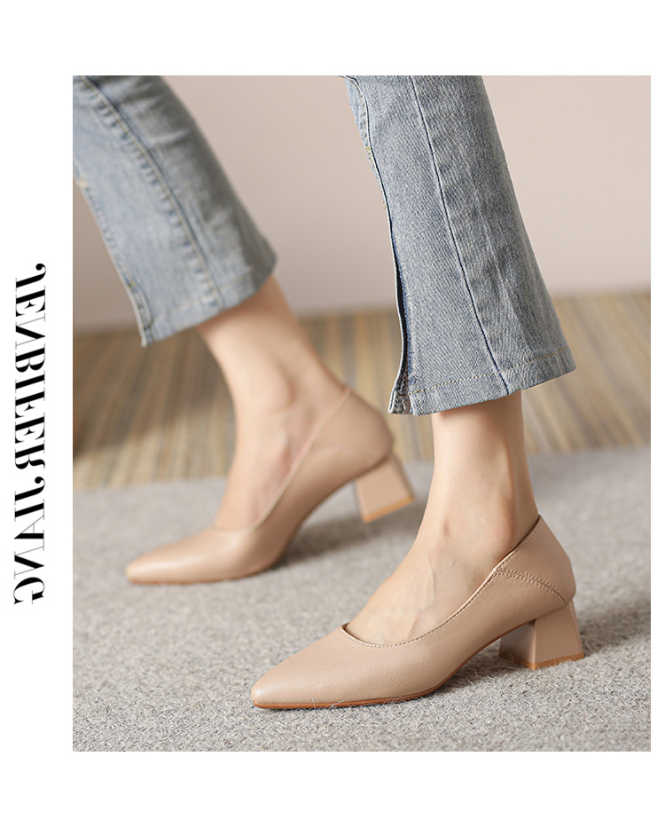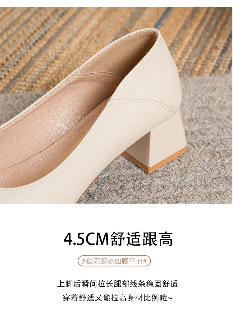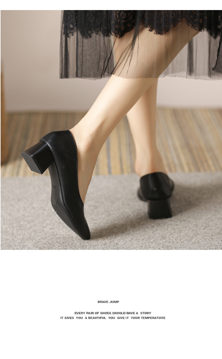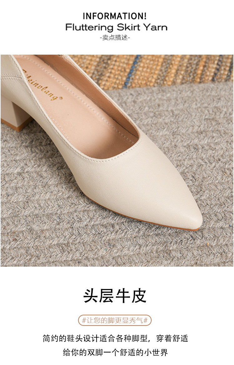 뾰족한 청키 힐 얕은 입 싱글 레이어 신발 여성용 2023 봄과 가을 새로운 사이버 연예인 모든 매치 소프트 로우 힐 신발 블랙 작업 신발스토어 가기