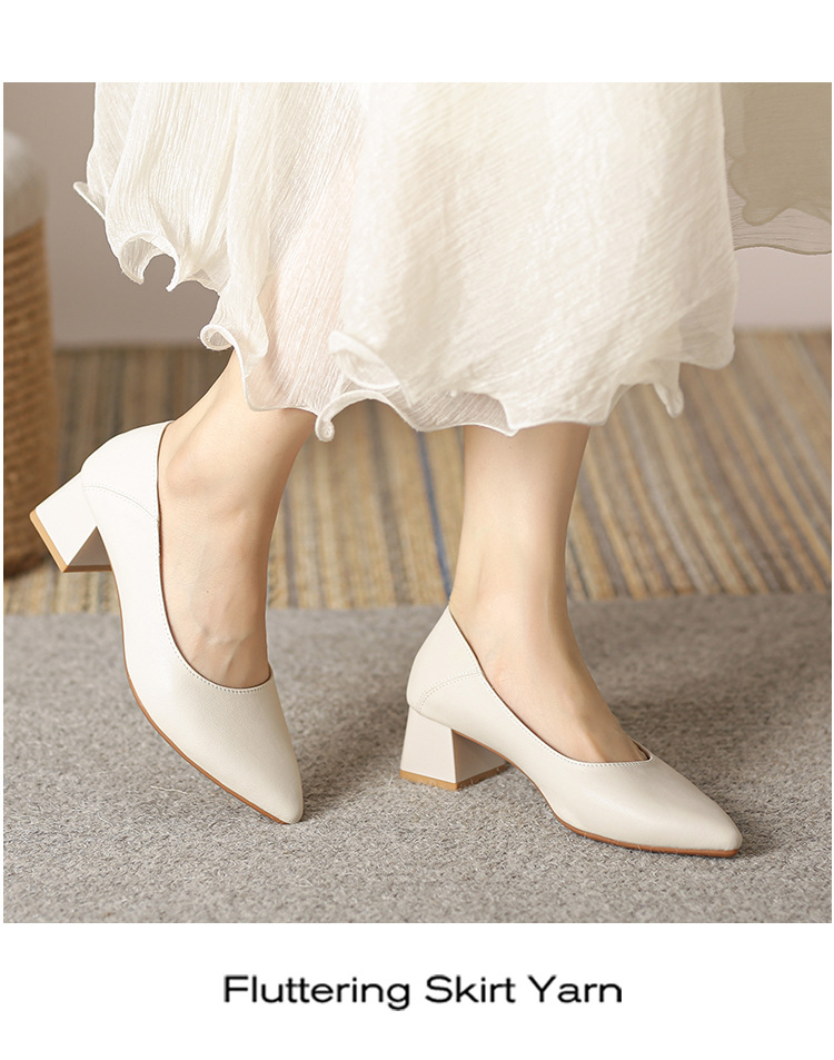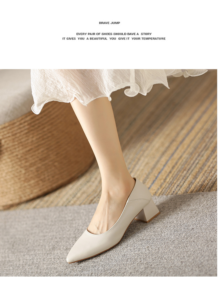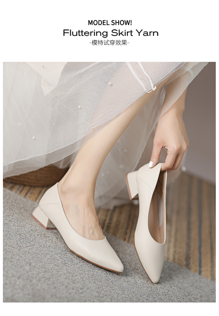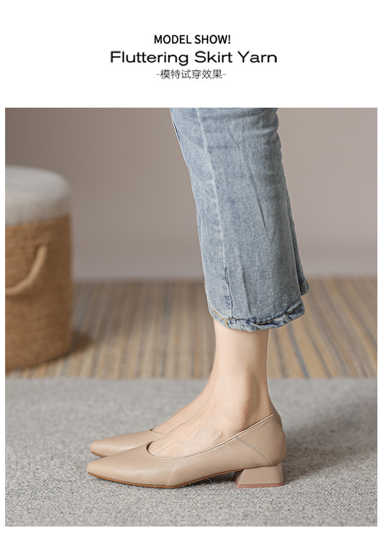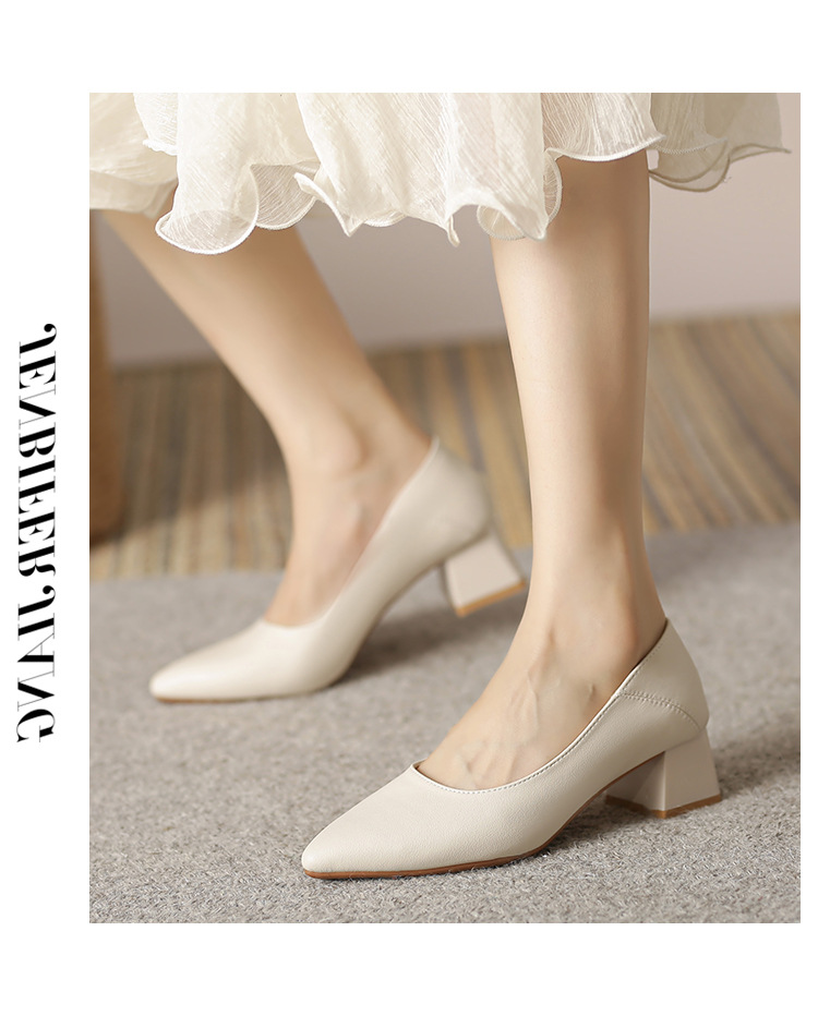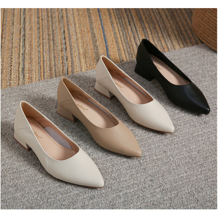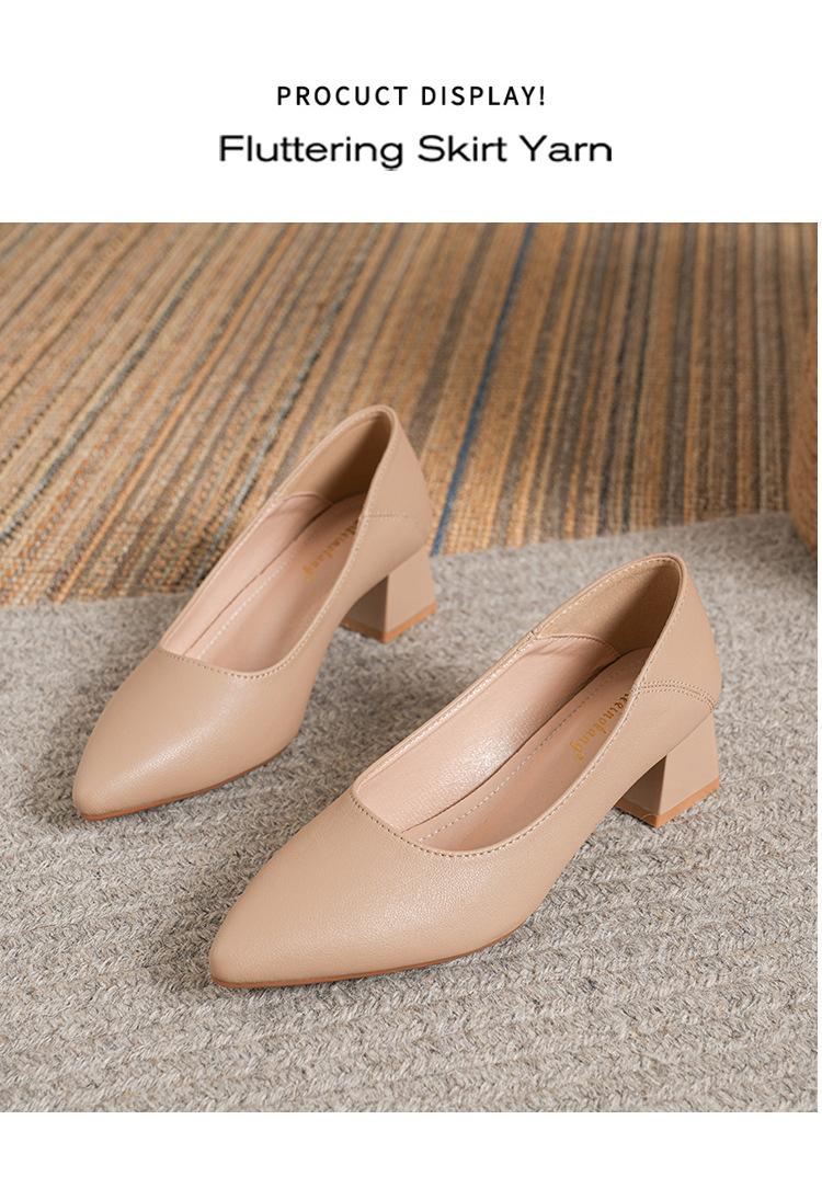 뾰족한 청키 힐 얕은 입 싱글 레이어 신발 여성용 2023 봄과 가을 새로운 사이버 연예인 모든 매치 소프트 로우 힐 신발 블랙 작업 신발스토어 가기