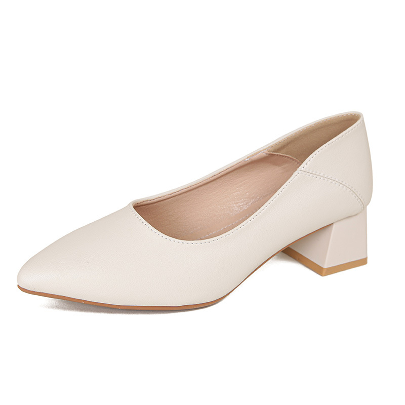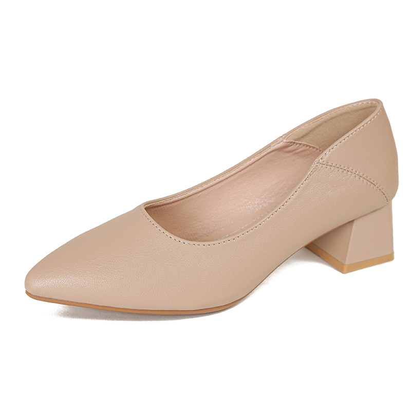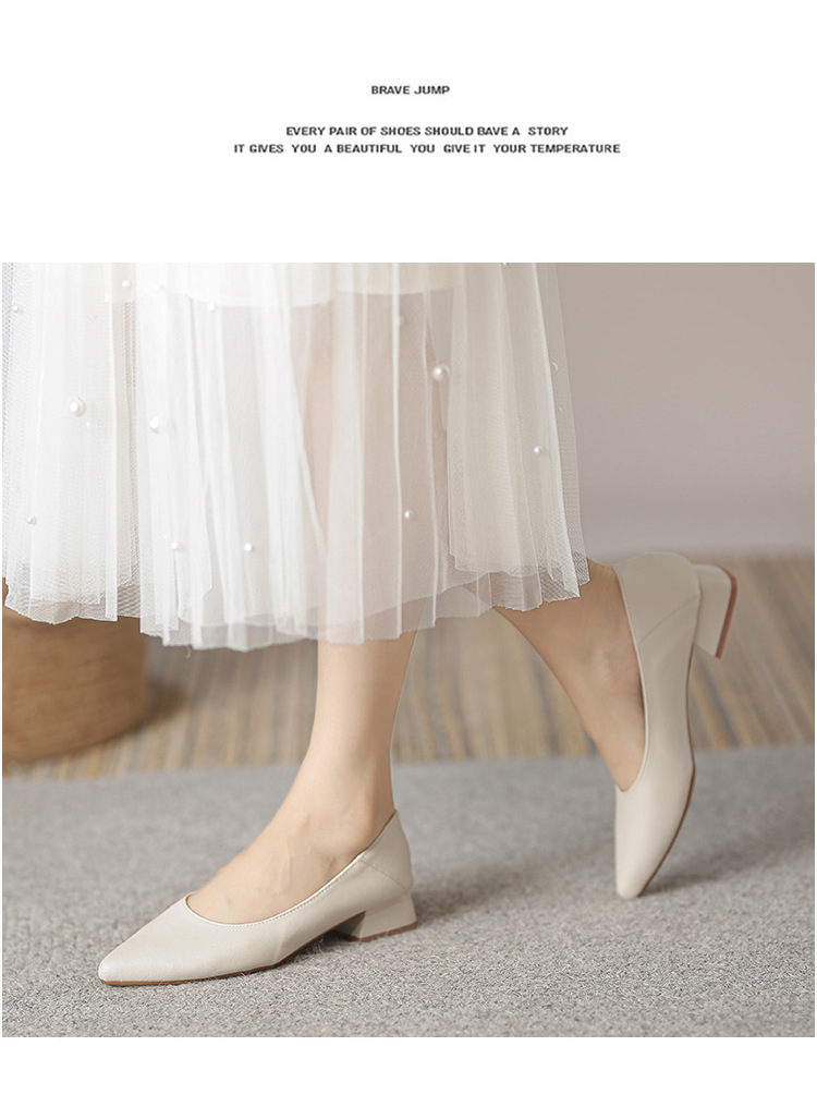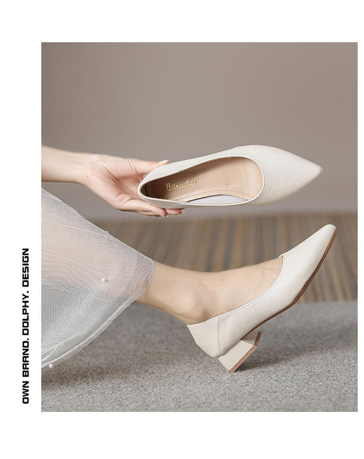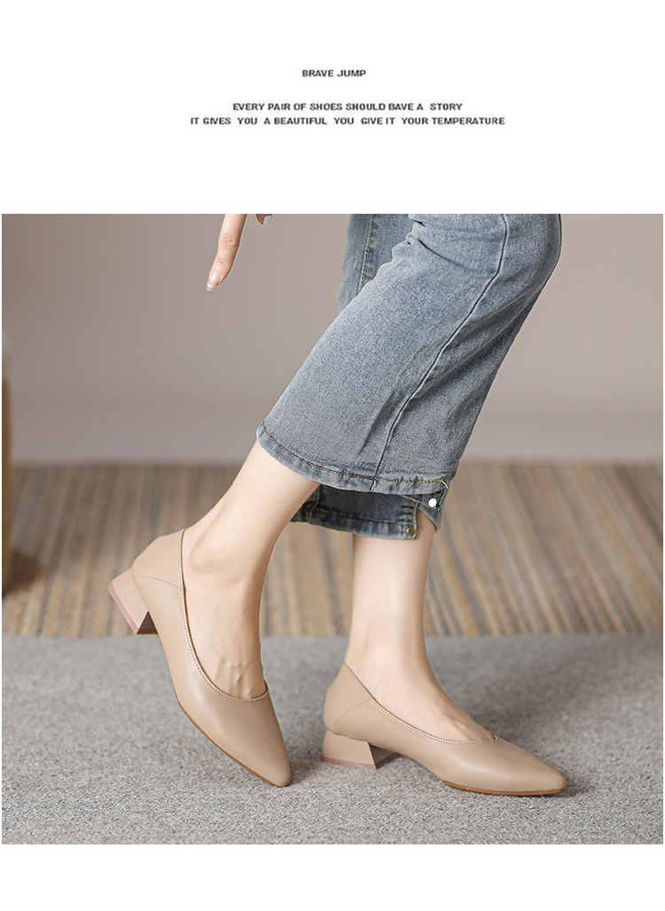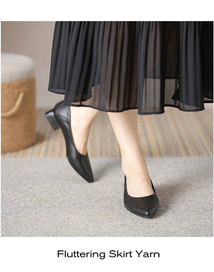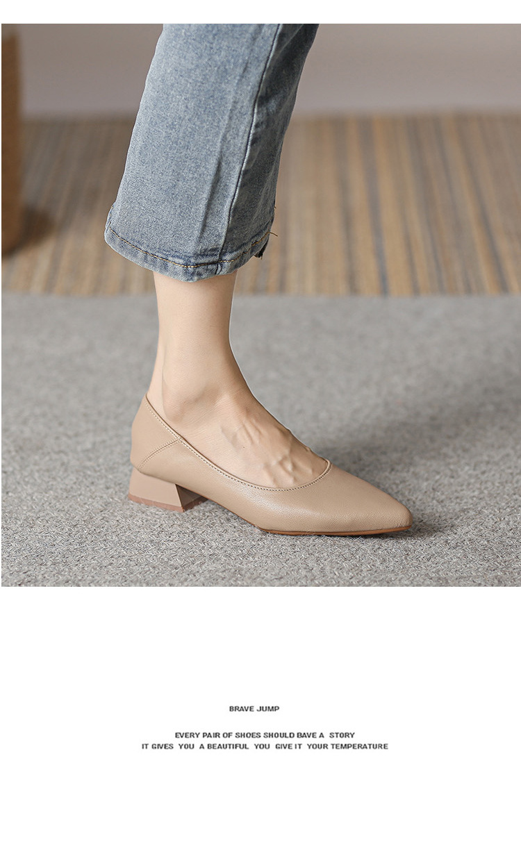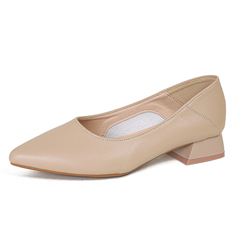 뾰족한 청키 힐 얕은 입 싱글 레이어 신발 여성용 2023 봄과 가을 새로운 사이버 연예인 모든 매치 소프트 로우 힐 신발 블랙 작업 신발스토어 가기
